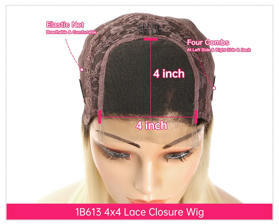 Парик Facebeauty 4x4 на сетке, бразильский прямой парик с Омбре, светлые человеческие волосы, парики без повреждений 1B 613, парик на сетке спереди, предварительно выщипанный
