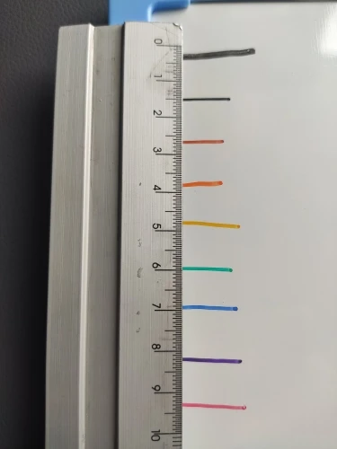 Хорошие маркеры, точно так же, как рекламируется. Яркие цвета, нет запаха, и кончики тонкие и жесткие, что отлично подходит для маленького почерка (в отличие от обычных толстых маркеров). Магнит достаточно сильный, чтобы держать ручку вверх дном, но если вы встряхните доску, ручка упадет. Мне не нужно было общаться с продавцом, и посылка была отправлена сразу же после оплаты. Я рекомендую этот товар и этот продавец.
