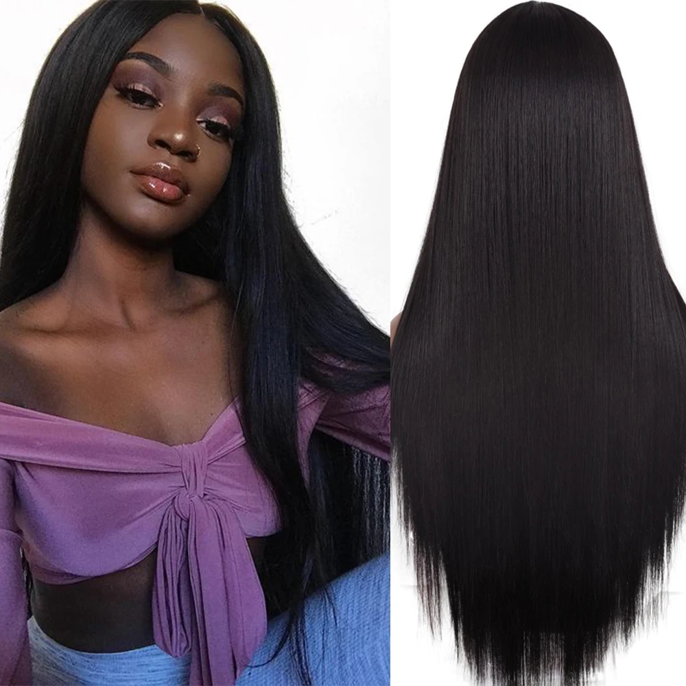 Длинный прямой черный парик AZQUEEN, синтетические парики для женщин, парик из термостойкого волокна, натуральный