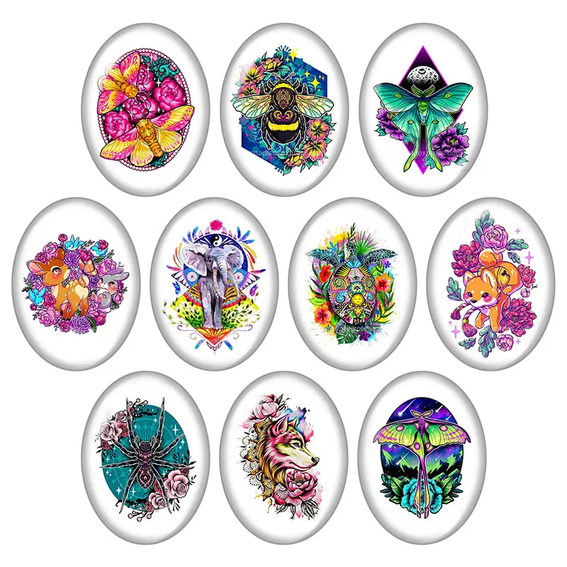 Любовь животных Единорог "Лиса", "Волк" Тигр пчелы Овальный 13x1 8 мм18x2 5 мм30x40 мм Смешанные фото стекло кабошон демо с плоской задней частью ювелирные изделия