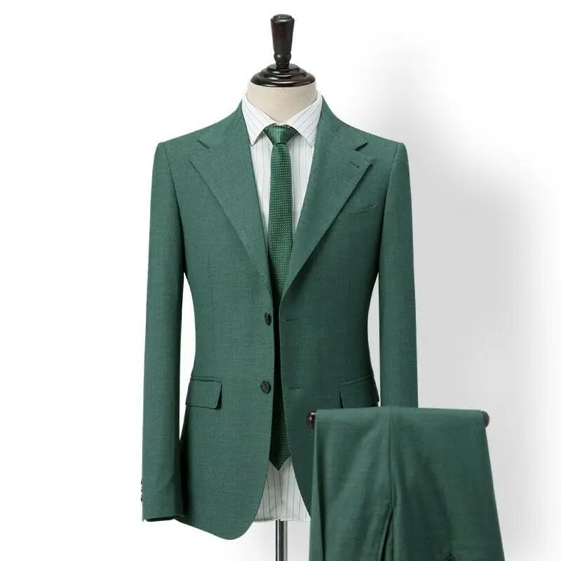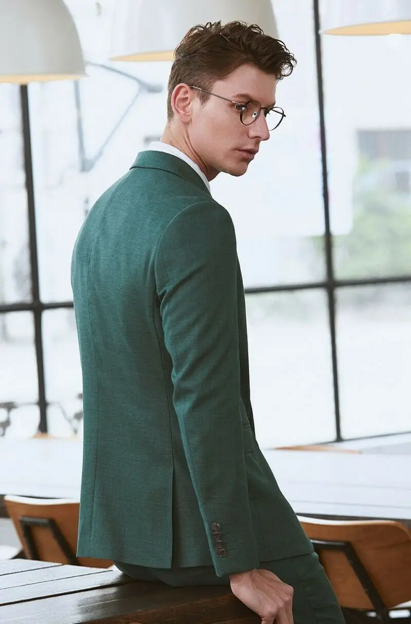 Новейший дизайн, зеленые мужские костюмы, Модный свадебный смокинг, деловые костюмы для жениха на заказ, облегающие мужские костюмы, 2 предмета (пиджак + брюки)