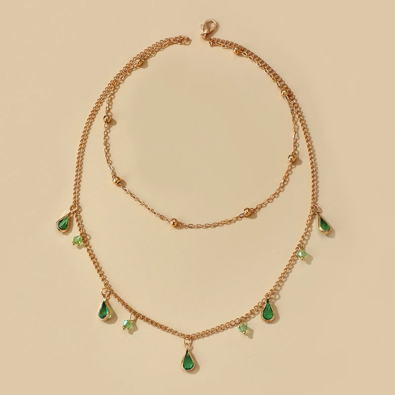 Богемное ожерелье-цепочка Tocona, зеленая стразы, металлический сплав золотого цвета, модный подарок для ювелирных изделий, оптовая продажа, 14723