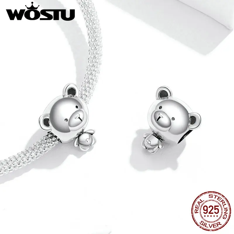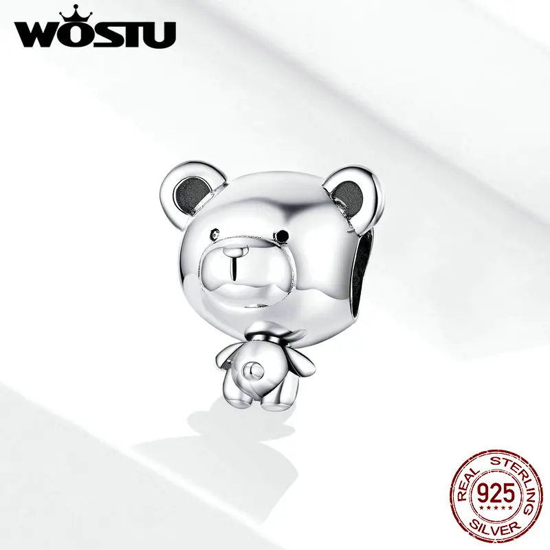100% 925 пробы Серебряный тупой маленький Медвежонок бусины подходят шарм браслеты WOSTU горячая Распродажа Медвежонок амулеты Изготовление ювелирных изделий FIC1502