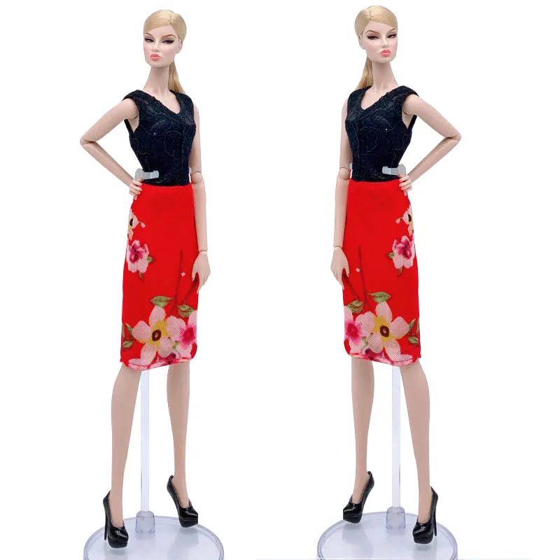 Черный жилет, красное платье с цветочным принтом, модная кукольная одежда для кукол Барби, короткие платья Вечерние вечернее платье, 1/6, аксессуары для кукол