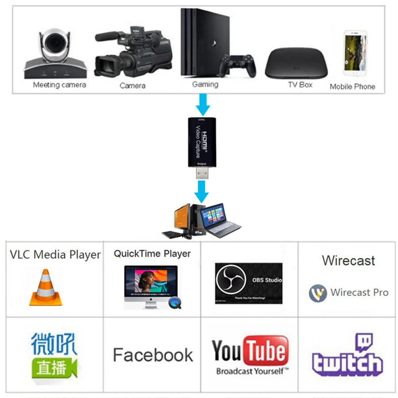 USB карта видеозахвата HDMI USB 2,0 видео Захват запись 1080P30Hz для прямой трансляции PS4 игра DVD камера Запись