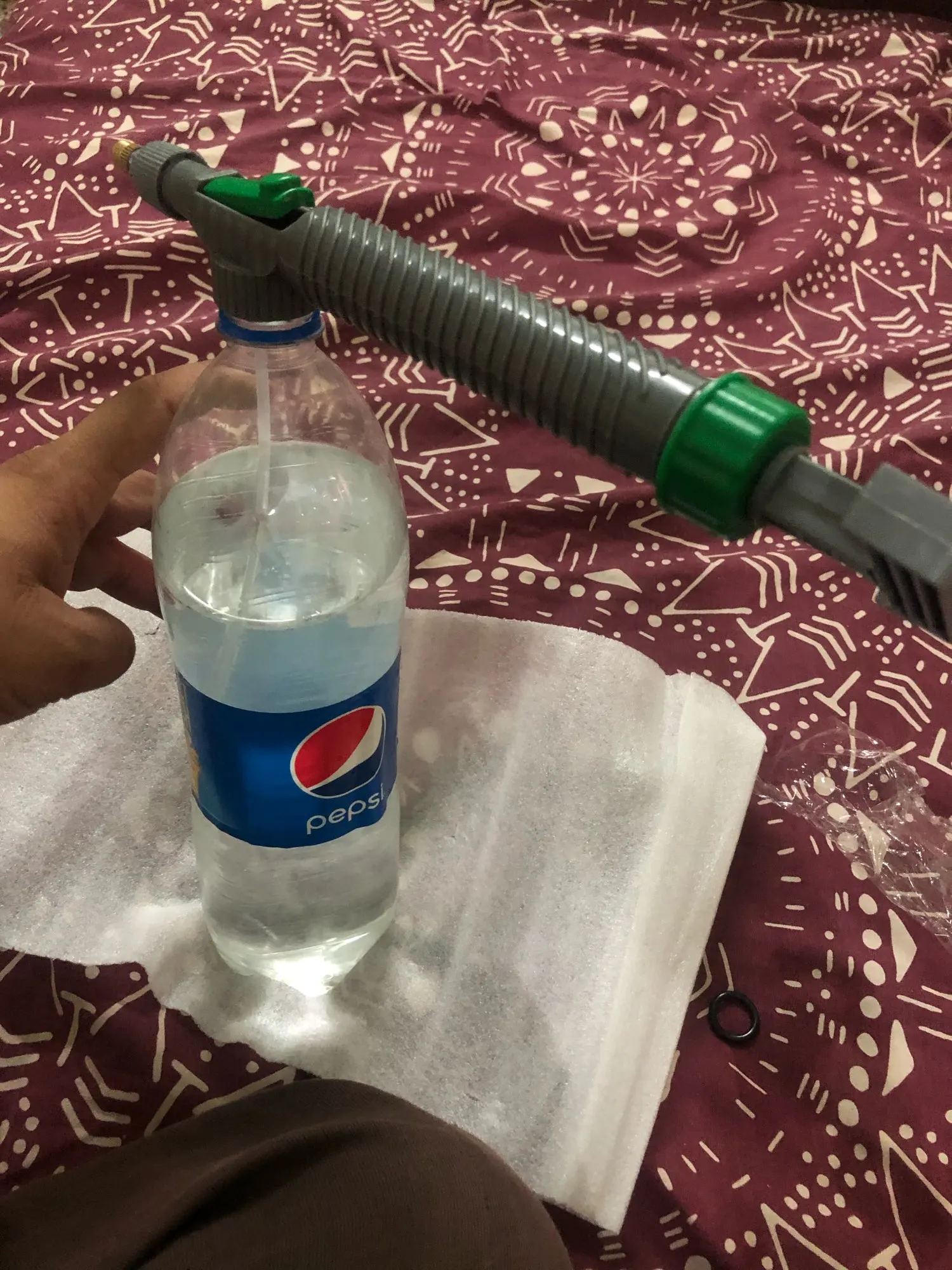 Очень полезно! Чтобы очистить мотоцикл, машина поглаживает растения или купает птицы или пылесосит. Он прибыл через 15 дней и должен расширять воду или поставить ее в ужасном режиме. Работает с бутылками кока-колы, фанта, газиазо... Работает отлично.
