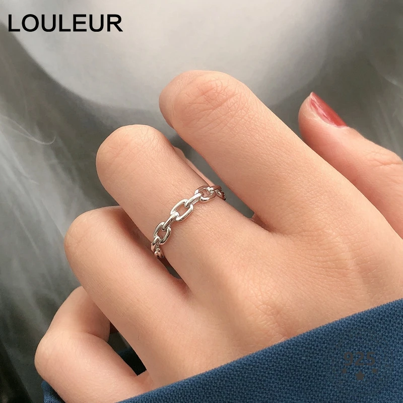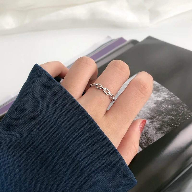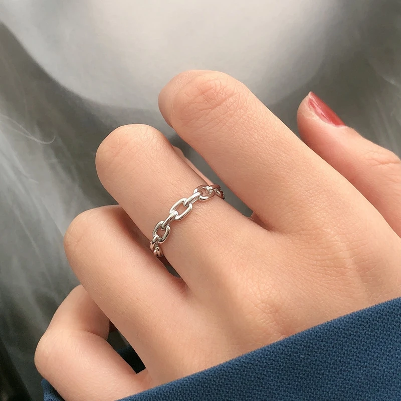 Женское регулируемое кольцо-цепочка в минималистическом стиле, из настоящего серебра 925 пробы