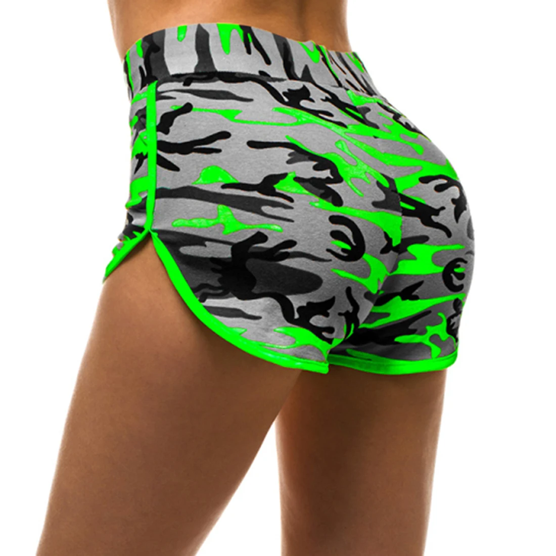 Женские спортивные шорты для йоги, женские крутые шорты, спортивные шорты для фитнеса, камуфляжные эластичные шорты для бега и занятий йогой, 2021