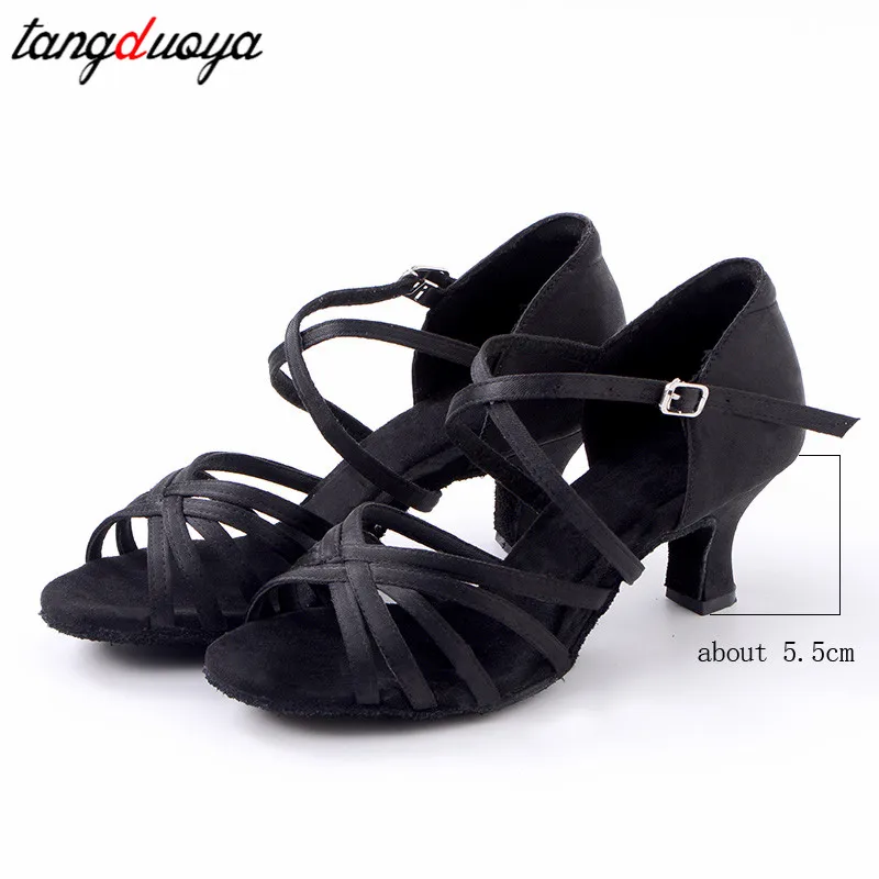 Для женщин Туфли для латинских танцев для женщин и девушек Танго бальная танцевальная обувь с цветами на высоком каблуке Танцы обувь 5,5 см