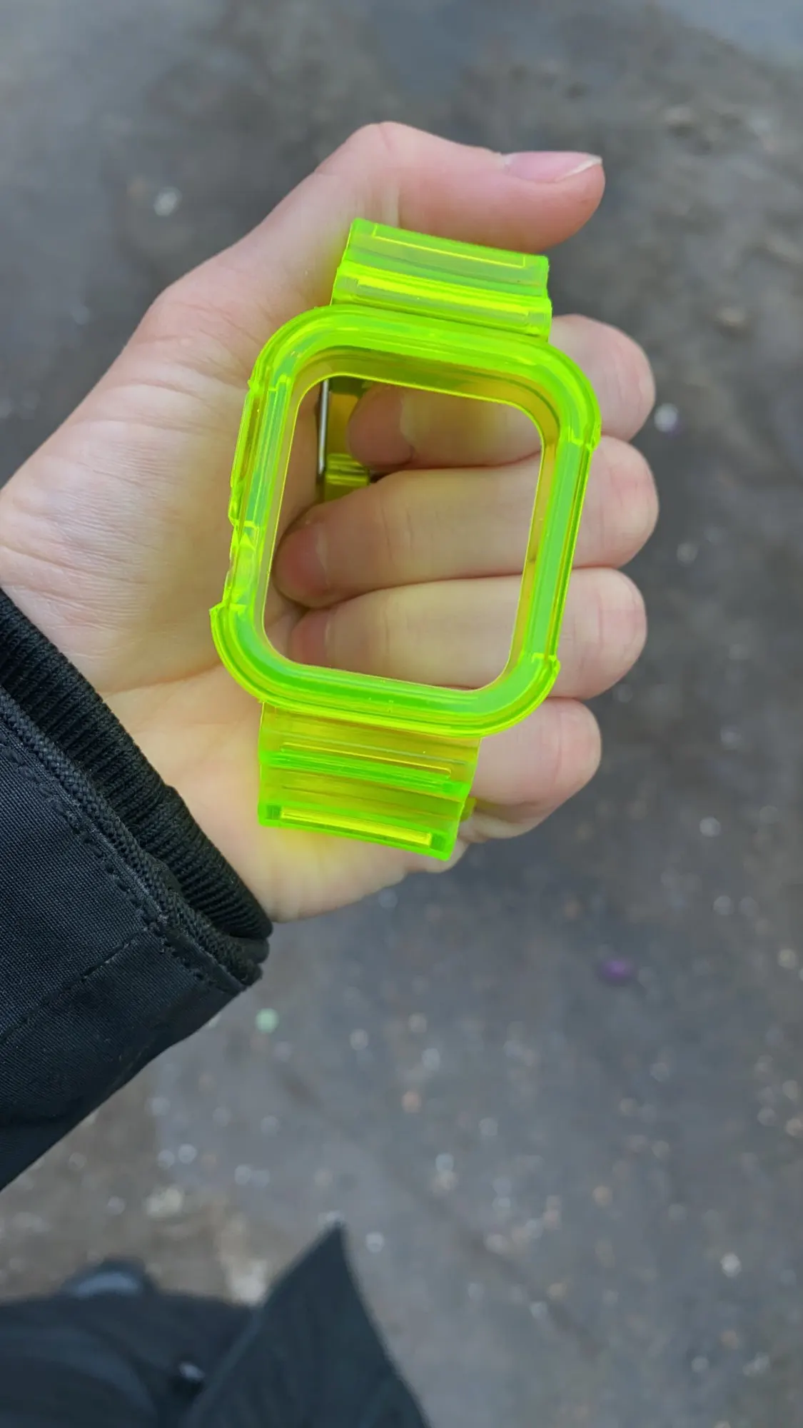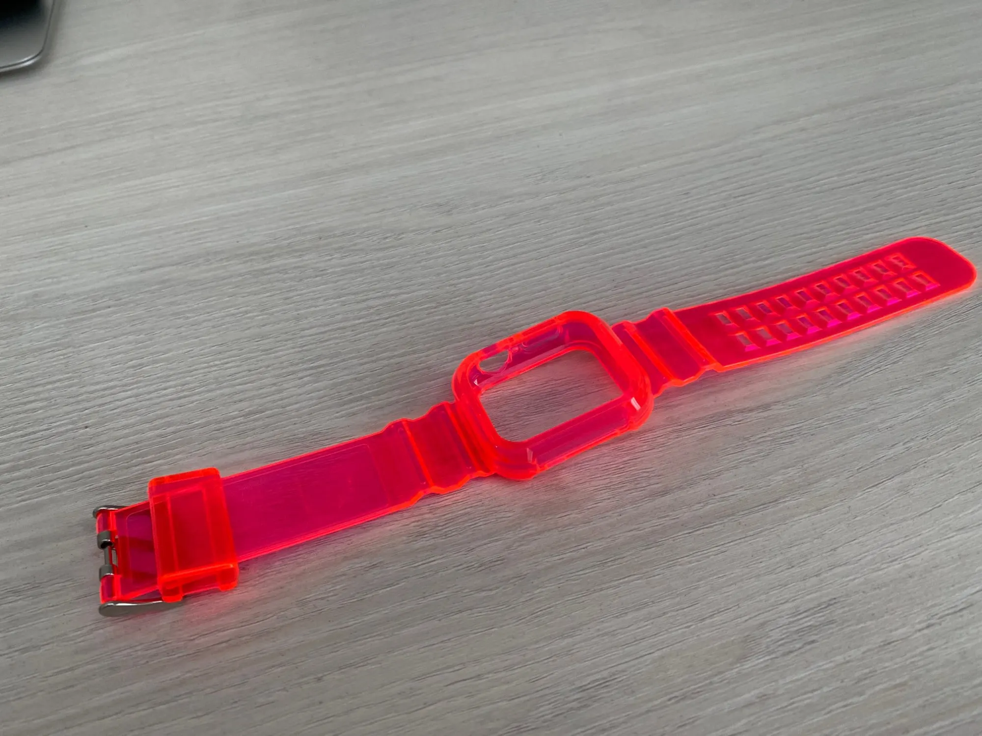 Выглядит круто, но мне не особо удобно долго носить. При разгибании кисти сильно давит на руку, но это дело привычки. Плотный гибкий пластик или силикон. Защищает боковые части часиков.