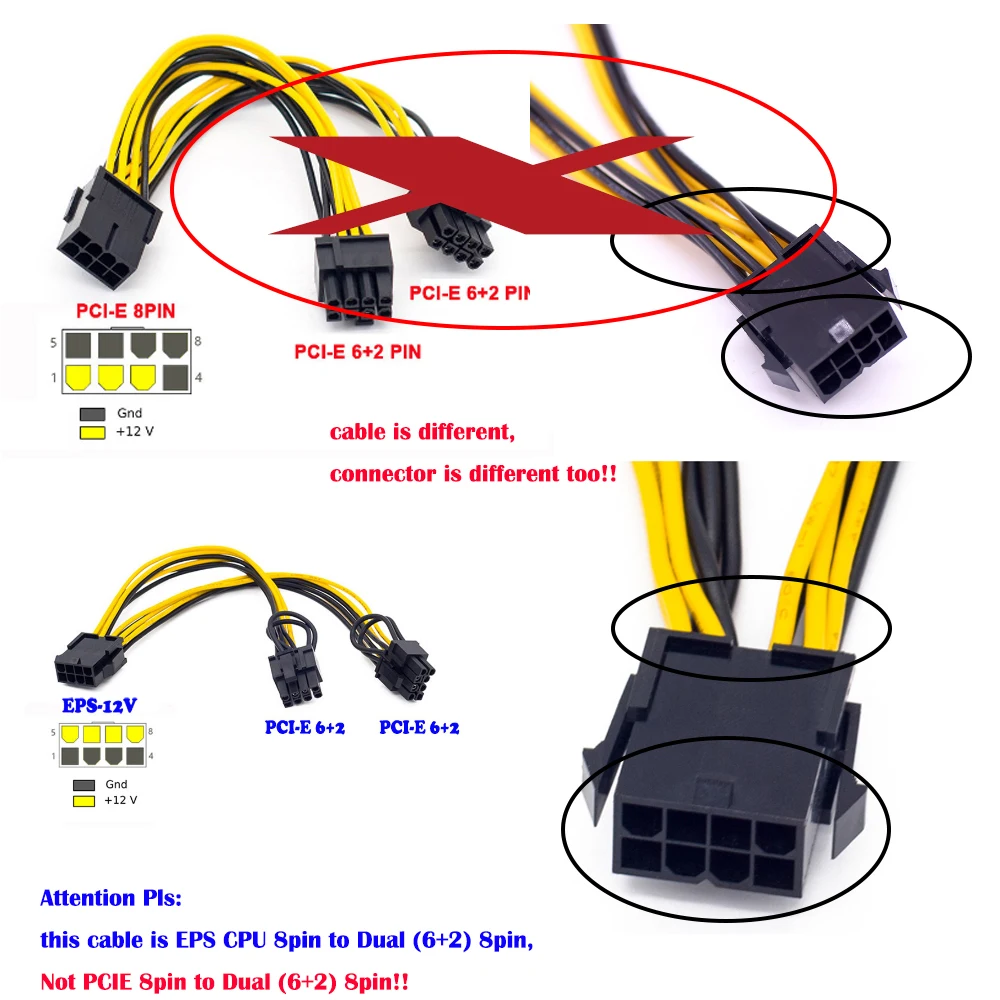 2 шт. EPS ЦП 12 В 8-контактный на двойной 8-контактный (6 + 2)-конт...