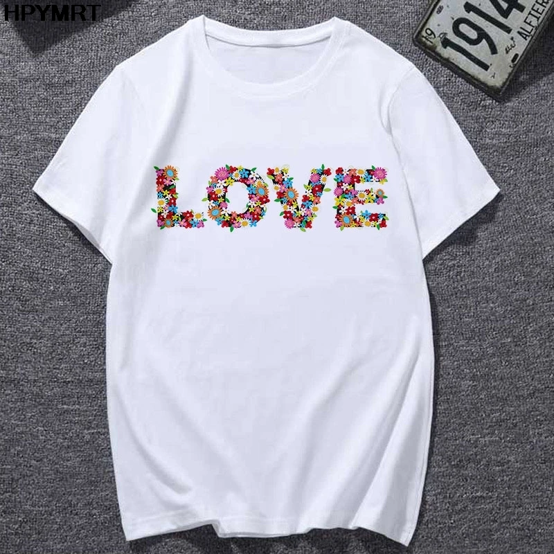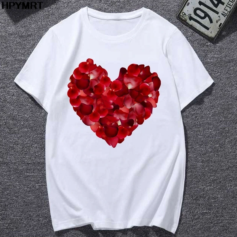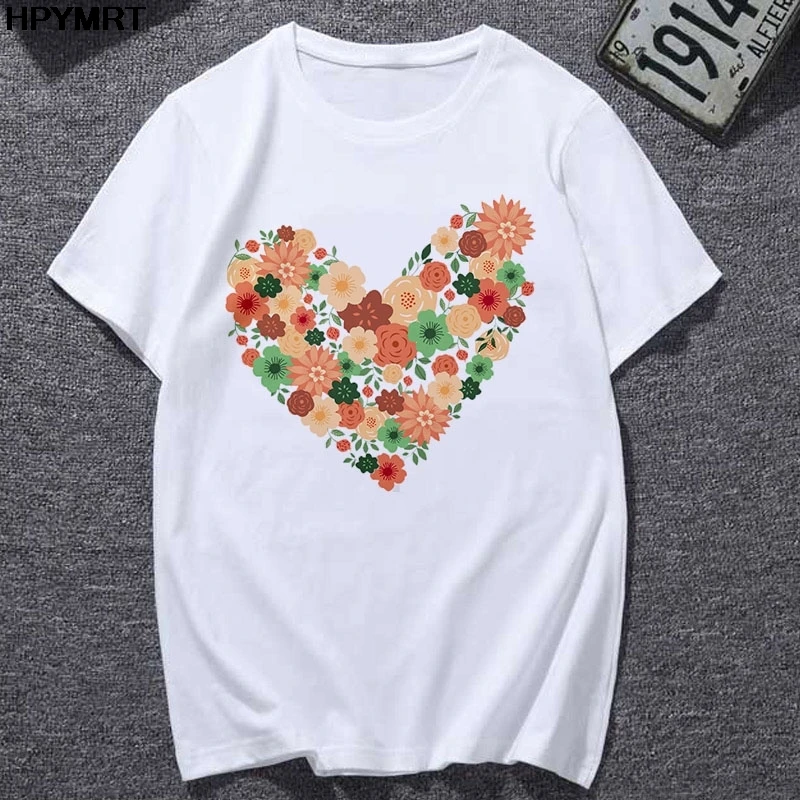 Женская футболка с принтом сердца и цветочным принтом; Повседневная...