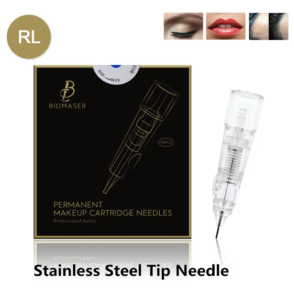 Biomaser 1R одноразовый Перманентный макияж картридж иглы татуировки с наконечниками из нержавеющей стали для подводка для глаз, бровей, губ PMU машина