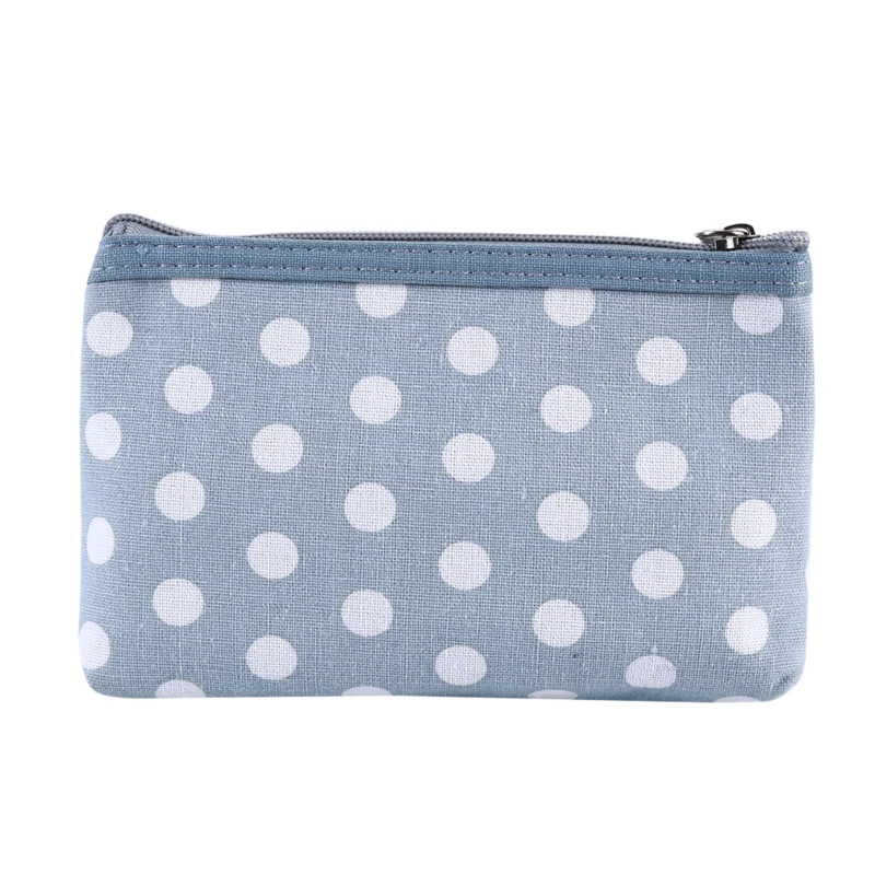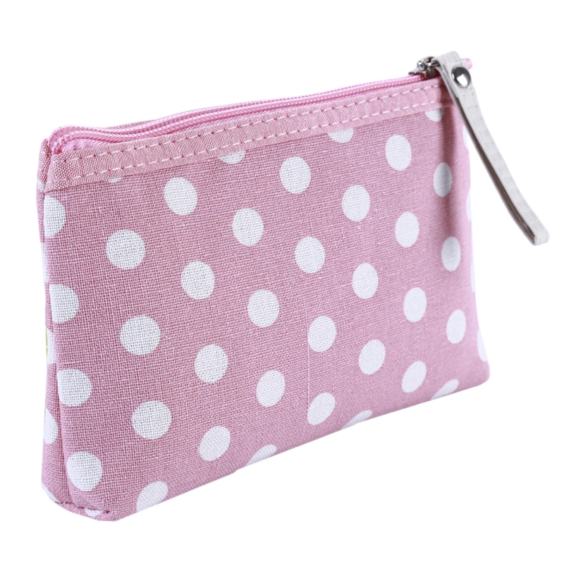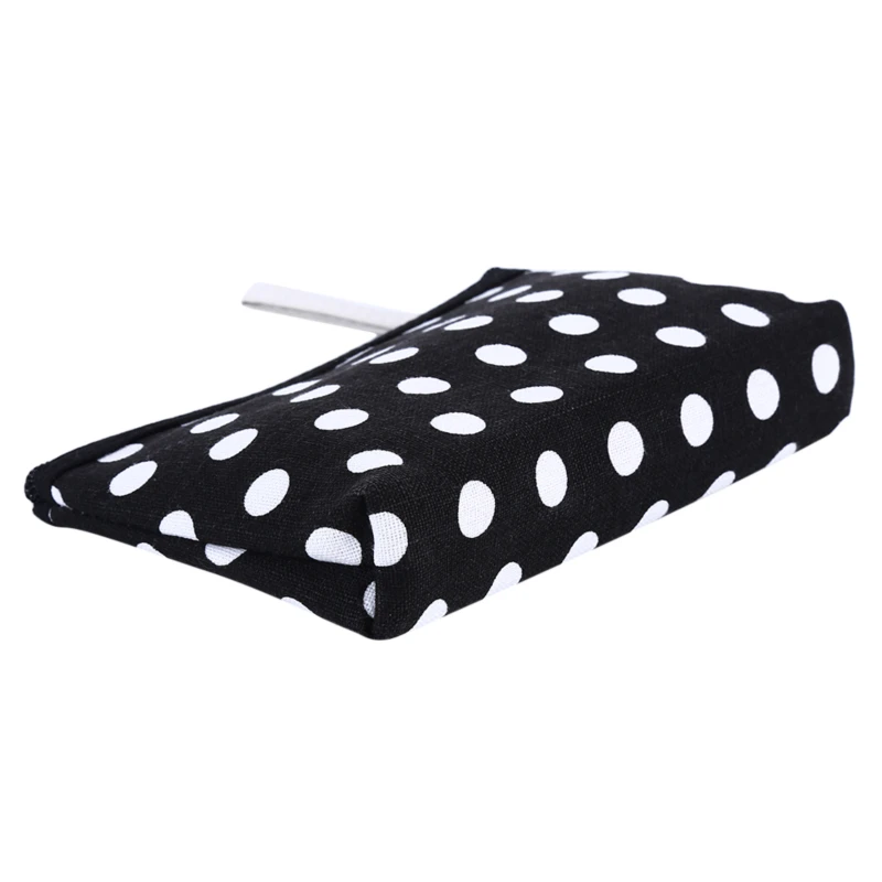 Брезентовая сумка в горошек на молнии, удобная портативная сумочка для ключей и карт, маленькие свежие туалетные принадлежности, милые и простые мешки для хранения косметики