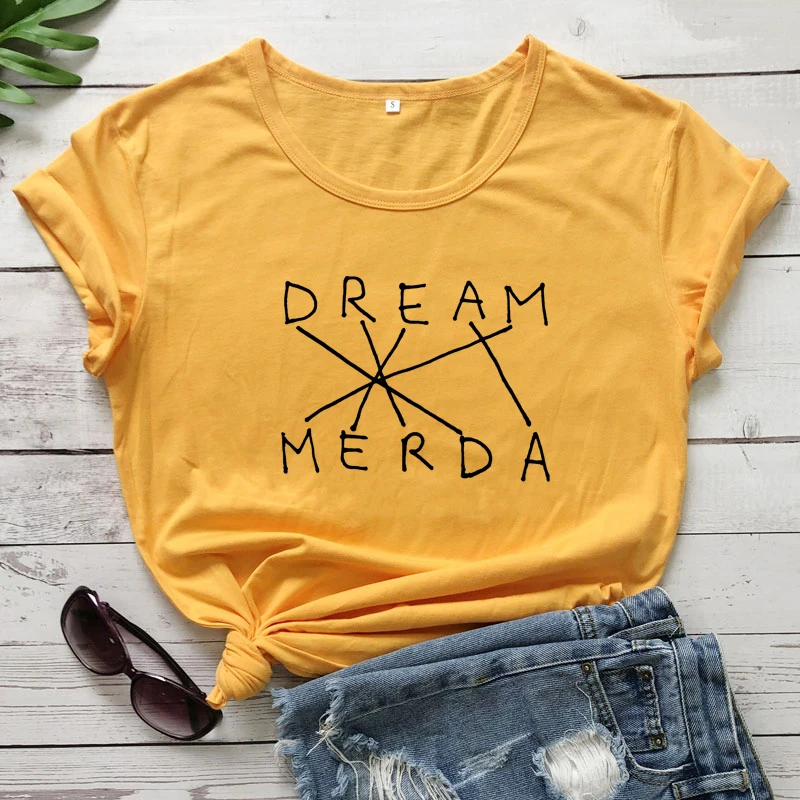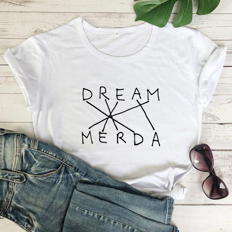 Женская футболка с коротким рукавом Dream Merda, повседневная хипстерская футболка Tumblr, вдохновляющая цитата, Прямая поставка