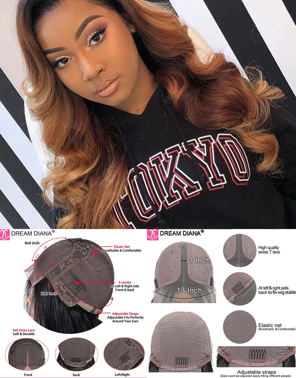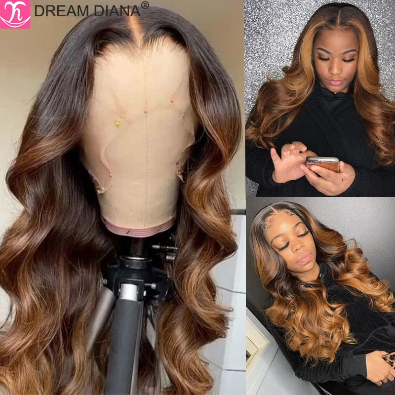 Парик DreamDiana с эффектом омбре, бразильские волнистые парики с фронтальной сеткой, плотность 150, без гулька, с эффектом омбре, 13x4, парик с фронтальной сеткой, парик из 100% натуральных волос