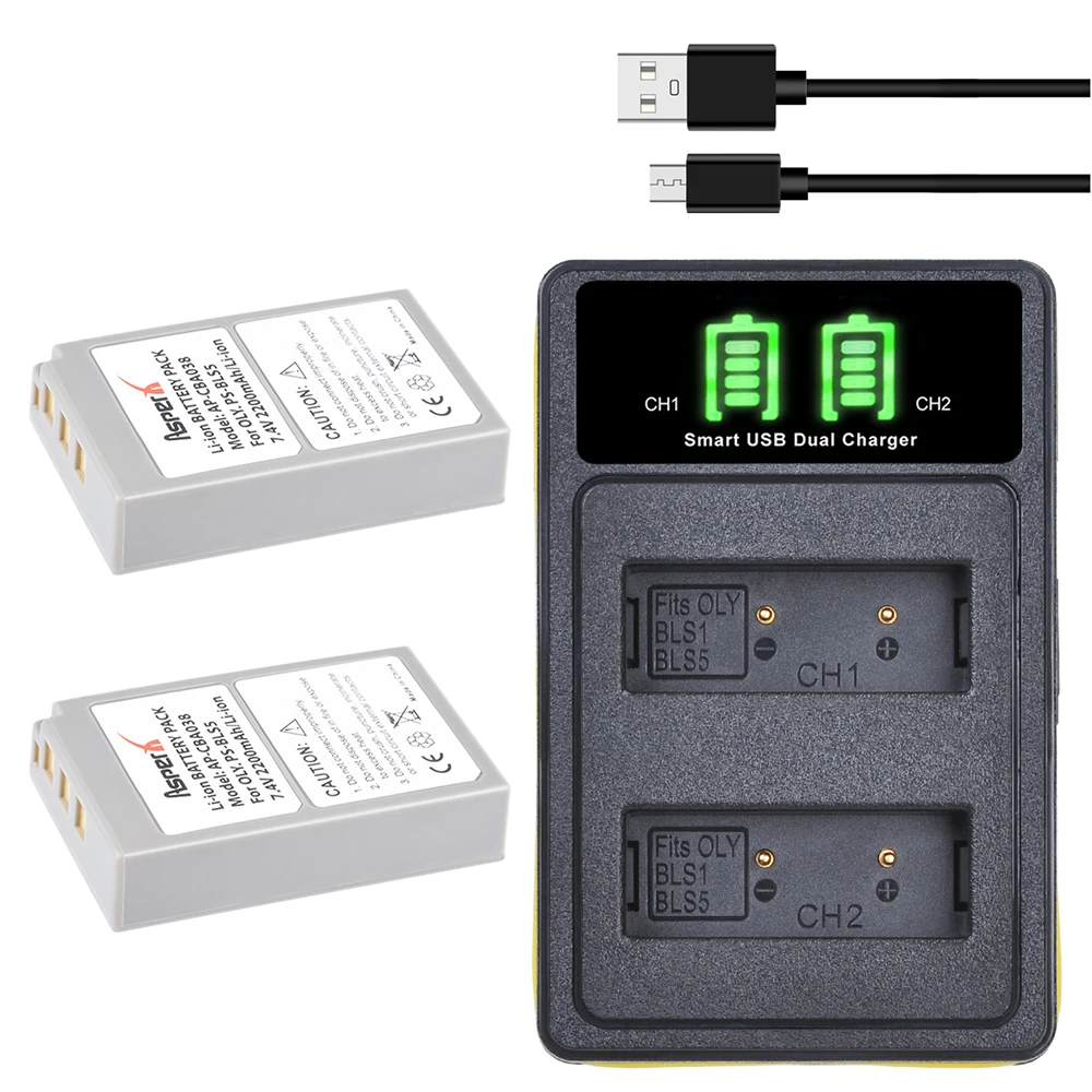 2x2200 мАч PS-BLS5 BLS-5 BLS5 BLS 5 батарея + USB зарядное устройство для Olympus OM-D E-M10 ручка E-PL2 E-PL5 E-PL6 E-PM2 стилус 1