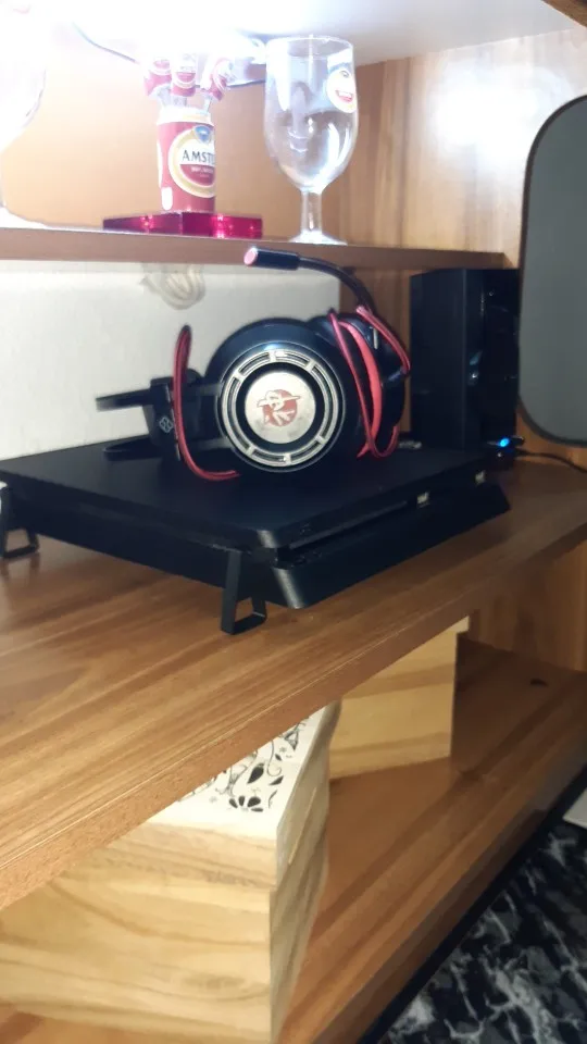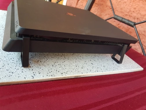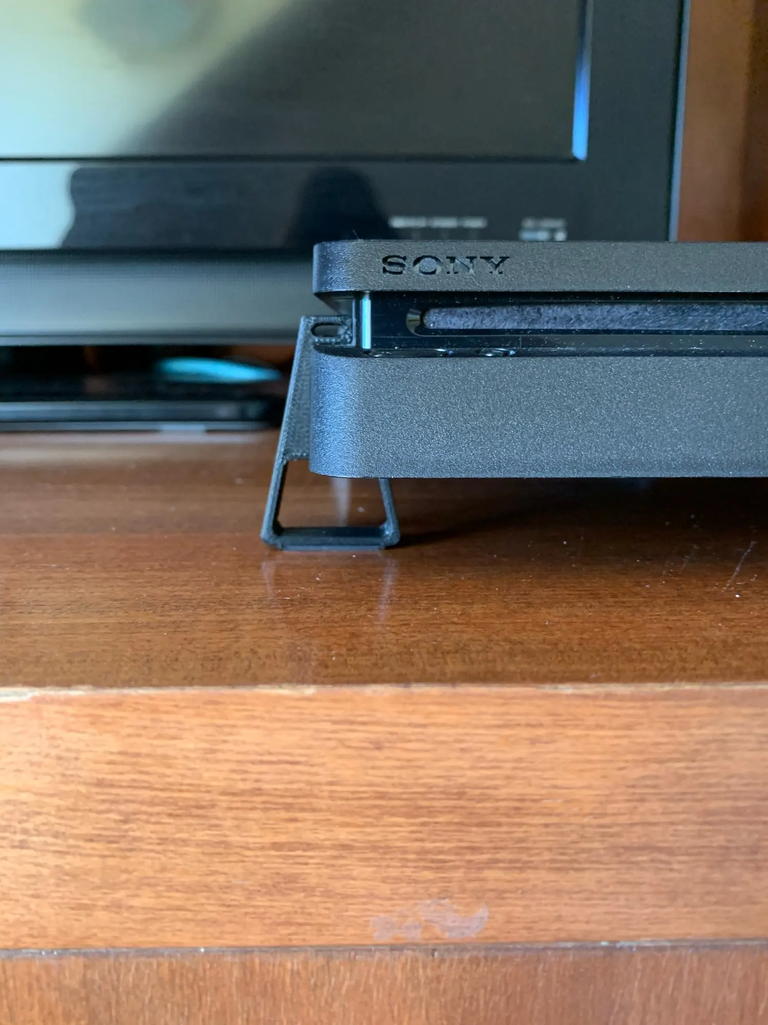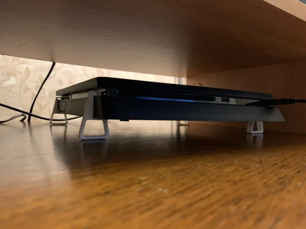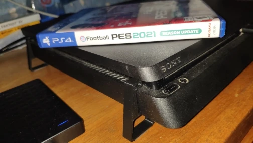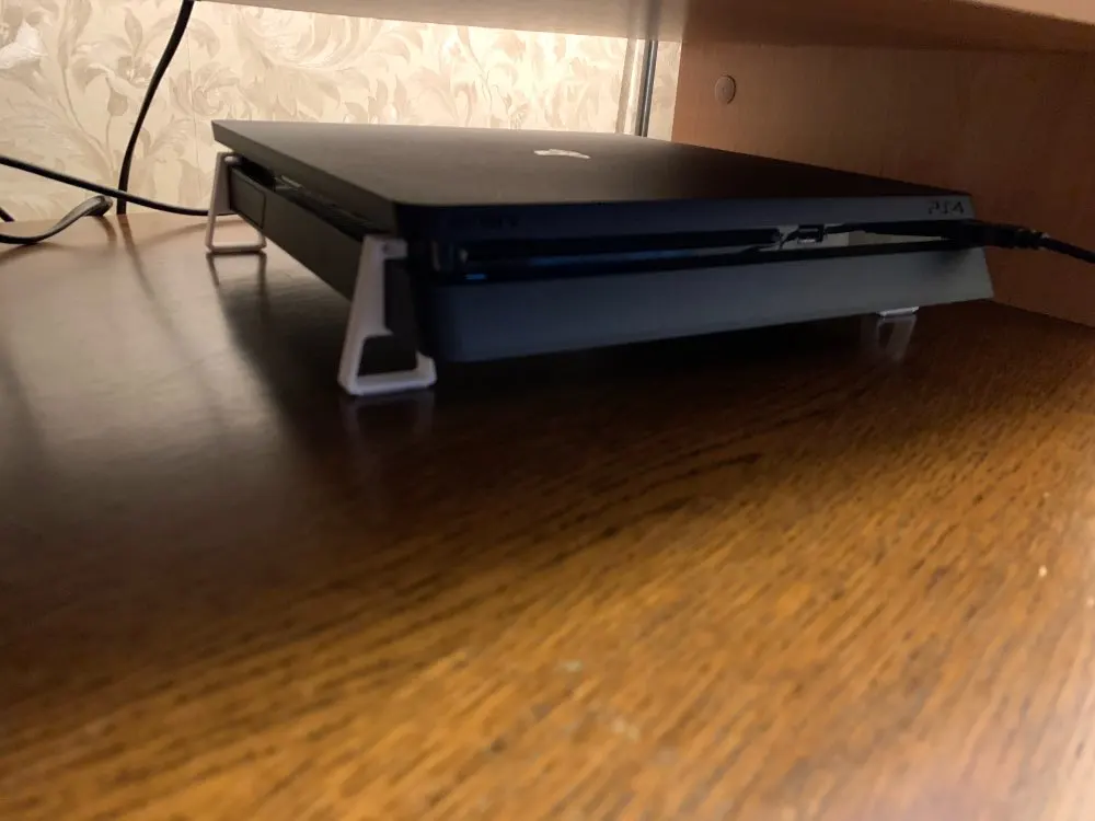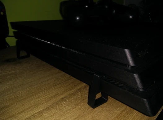 отлично подошло под ps4slim. Консоль стоит крепко и надёжно, при этом ножек практически не видно из-за их дизайна. Рекомендую к покупке.