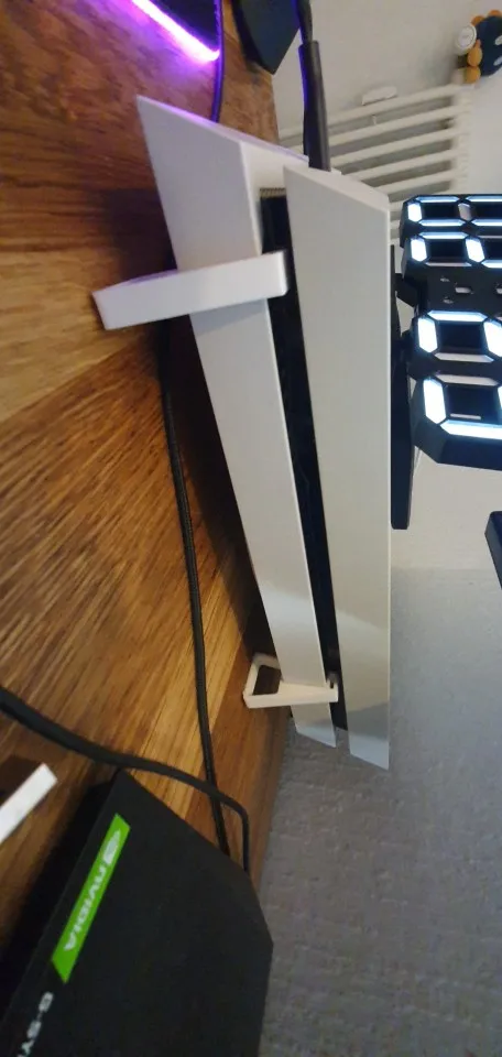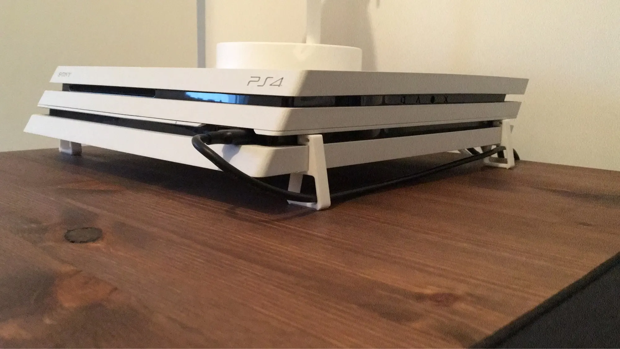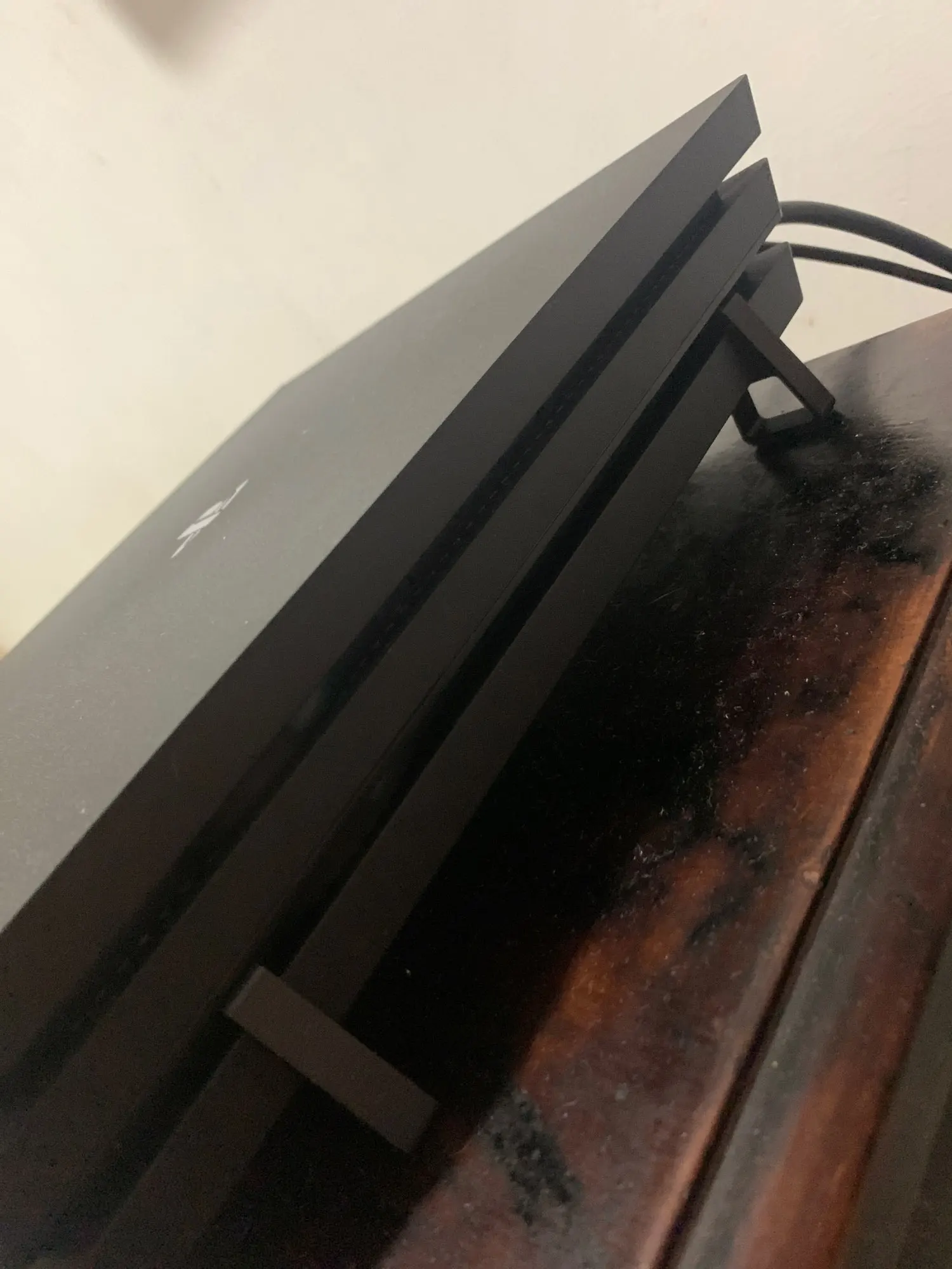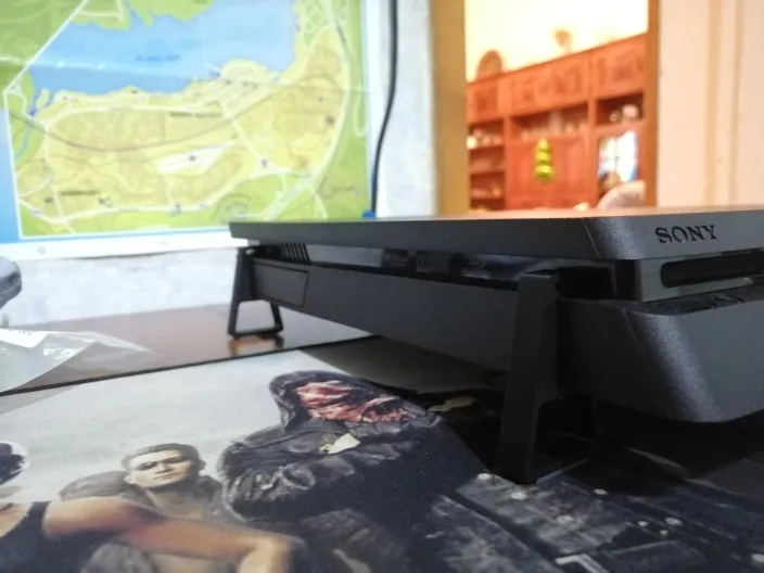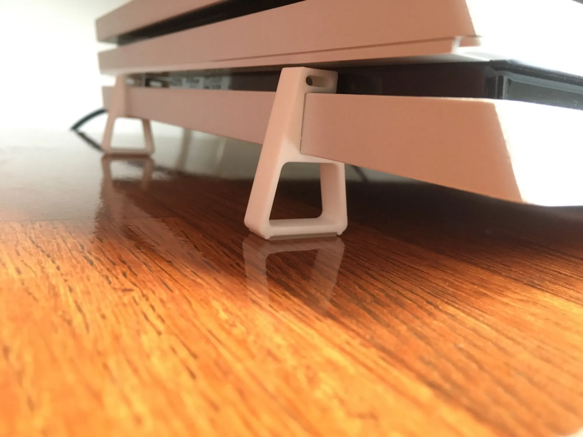 отлично подошло под ps4slim. Консоль стоит крепко и надёжно, при этом ножек практически не видно из-за их дизайна. Рекомендую к покупке.