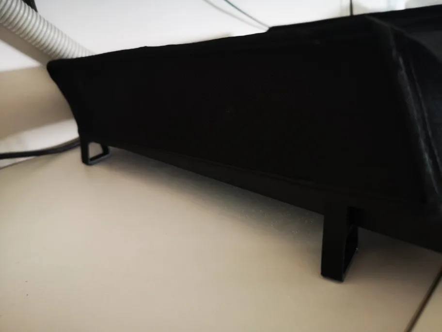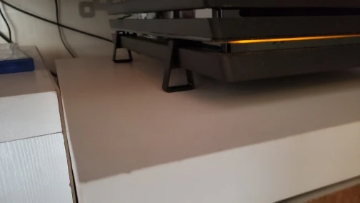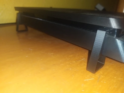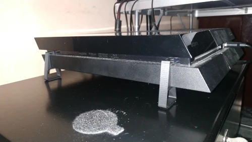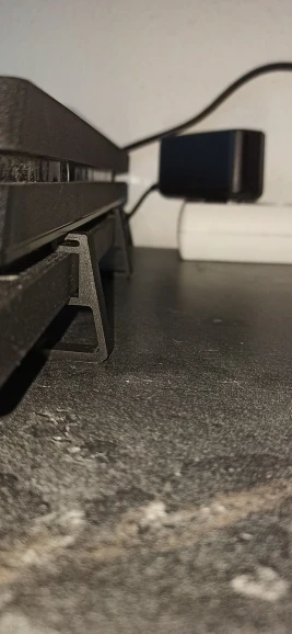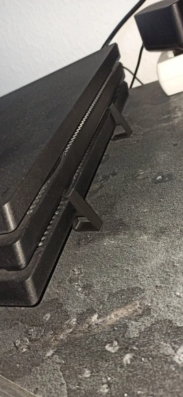 Item is As expected. Типичный пластик из 3D-принтеров, с более мягкой клейкой полосой на дне, чтобы не поцарапать мебель, где она поддерживается или не двигается. Он очень легко устанавливается и выполняет свою функцию, поднимает консоль на несколько сантиметров и заставляет нас поверить, что она лучше проветривается. Его эффективность с температурой? Будут разные мнения, но я хотел бы подумать, что это так. Он перестанет звучать как самолет? Ну нет.