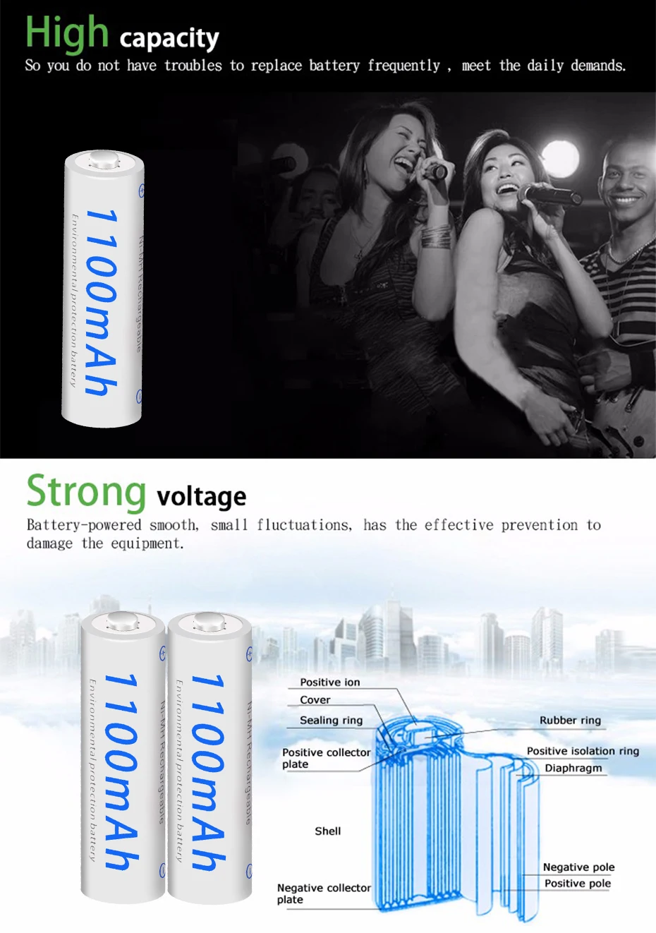 1. Высокая скорость удержания.2. Сильная способность удерживать напряжение батареи.3. Низкая скорость потери емкости аккумулятора.4. Длительный и стабильный Срок службы батареи.5. Высокая производительность разряда.Применение батареи:1. Игрушки, цифровые камеры, игровой плеер, MP3/mp4 плеер2. Фонарик3. Пульт дистанционного управления4. Домашний телефон5. Бытовые электрические приборы6. Широко используется для нашей повседневной жизни и т. д.Особенности аккумулятора:Тип: никель-металлогидридный низкоразряжающийся аккумуляторРазмер: AAAРазмер: Диаметр * Высота = 43(-0,5) мм * 10 м (-1,0) ммНоминальное напряжение: 1,2 VЕмкость: 550-1000 мАчСертификация: CE, ROHS и т. Д.Цикл перезарядки: 1800 раз