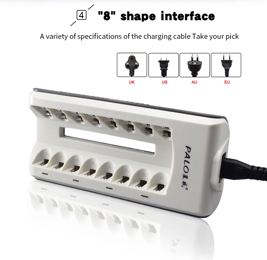1. Это зарядное устройство можно заряжать портативным зарядным устройством 2/4/6/8 шт 1,2 V AA, AAA, никель-металл-гидридный аккумулятор с никель-кадмиевый аккумулятор перезаряжаемый аккумулятор;2. Умный чип контролирует процесс зарядки, светодиодный светильник показывает процесс зарядки. Красный светильник при зарядке, зеленый светильник при зарядке пустой или аккумулятор полной зарядки;3. Независимый двухслотовый зарядный канал, множественная защита, поддержка быстрой зарядки;4. В конце процесса зарядки Встроенный микрокомпьютер преобразует режим зарядки от быстрой зарядки до зарядки микро-тока, обеспечивает полную зарядку аккумулятора и предотвращает чрезмерную зарядку;5. 100-240 В, мировое напряжение, подходит для всего мира;6. Постоянный ток предотвращает колебания тока, обеспечивает безопасность зарядки;7. Зарядное устройство строго контролирует максимальное время зарядки, гарантирует одновременную зарядку аккумулятора.Параметр:Партномер: 8 слотов 1,2 в AA AAA Батарея Зарядное устройствоВход: 100-240 В переменного тока, 50/60 ГцВыход: AA-350mA * 8, AAA-200mA * 8Потребление энергии без нагрузки: 1 Вт макс.Максимальная потребляемая мощность при полной нагрузке: 5 ВтСкорость заряда батареи: >80%Размер: 180 мм x 77 мм x 28 ммМатериал s: абс + Поликарбонат огнеупорный материалБренд: PALOСертификация: CE, RoHsВнимание:1. Использование окружающей среды: от 0 до 40 ℃, это нормальное явление, что батарея теплее, чем температура окружающей среды при зарядке.2. Убедитесь, что установленная батарея Верна: Установите +/-полюс аккумулятора в соответствии с +/-полюсом зарядного устройства.3. Не разбирайте и не собирайте зарядное устройство самостоятельно по соображениям безопасности.