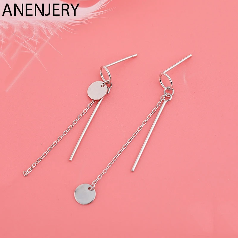 Женские асимметричные серьги ANENJERY, круглые серьги из стерлингового серебра 925 пробы с кисточками, вечерние серьги с геометрическим узором, S-E1184