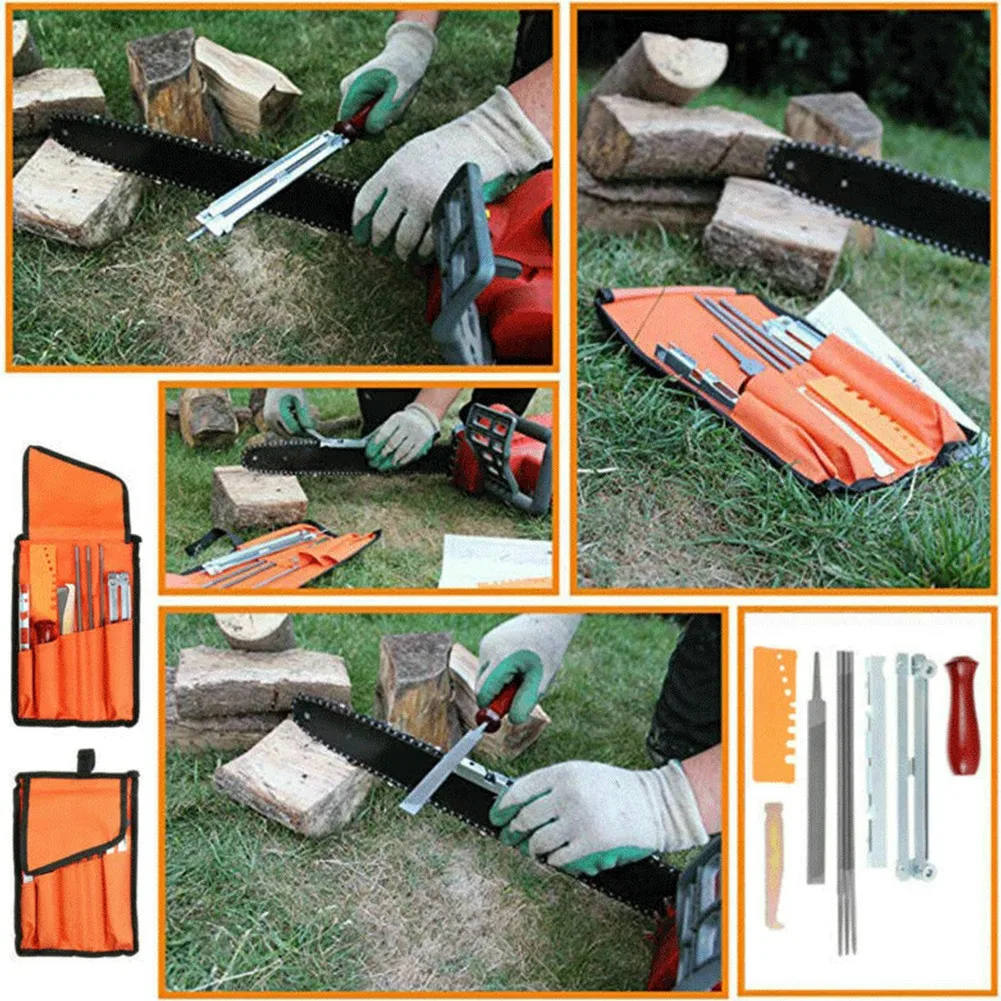 Области применения: набор инструментов используется для профессионального работника или личного пользователя для эффективной точки цепи бензопилы в любом рабочем состоянии.