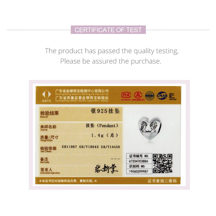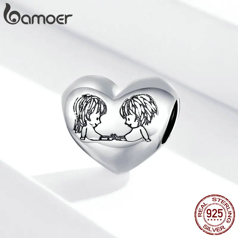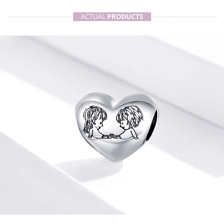 Bamoer серебро 925 ювелирные изделия гравировка фигура невинность детство Сердце Подвески для оригинального браслета женщин ювелирных изделий SCC1516