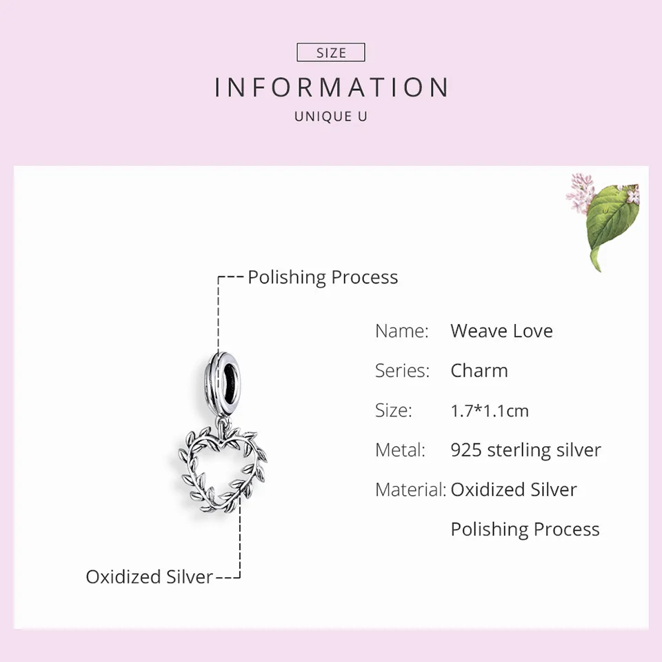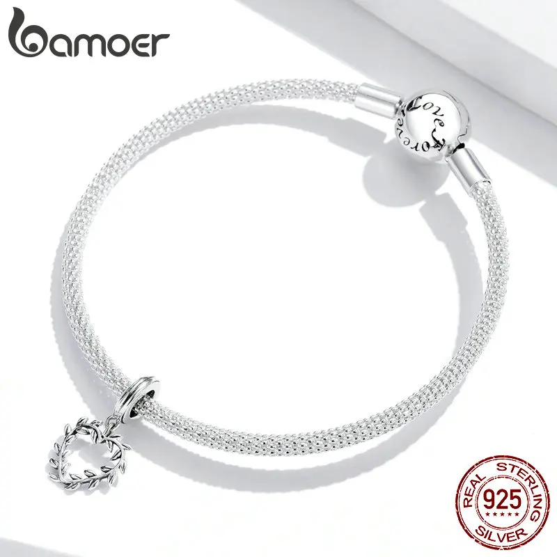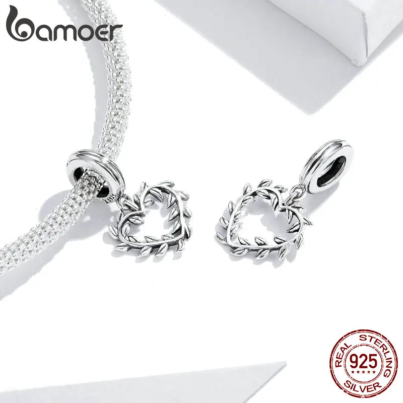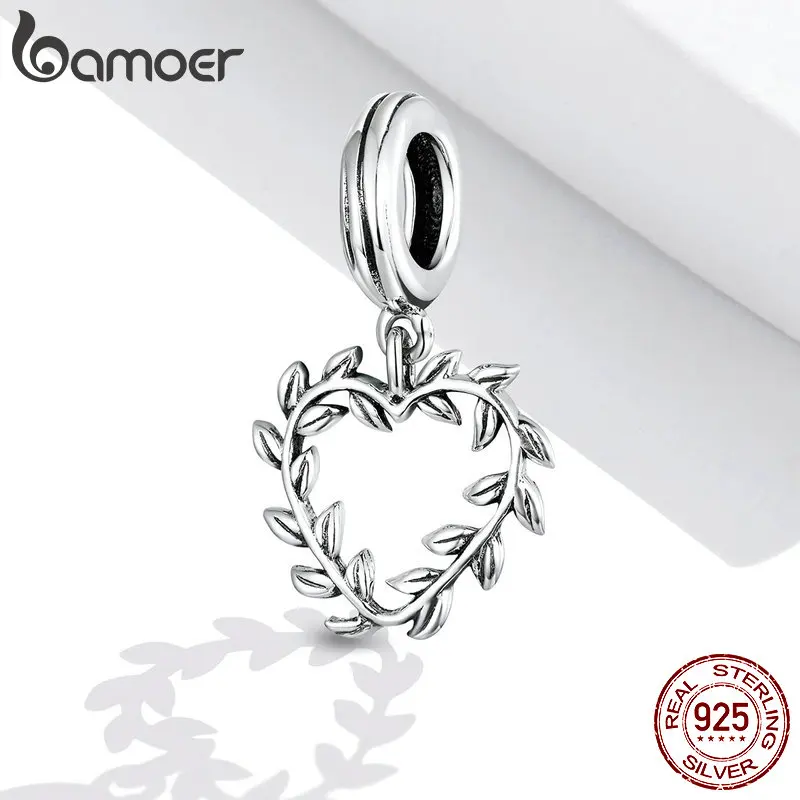 Bamoer винтажный кулон в форме листочка, кулон в форме сердца, подвеска для браслета, колье, ювелирное изделие из стерлингового серебра 925 пробы, аксессуары DIY, бижутерия SCC1520