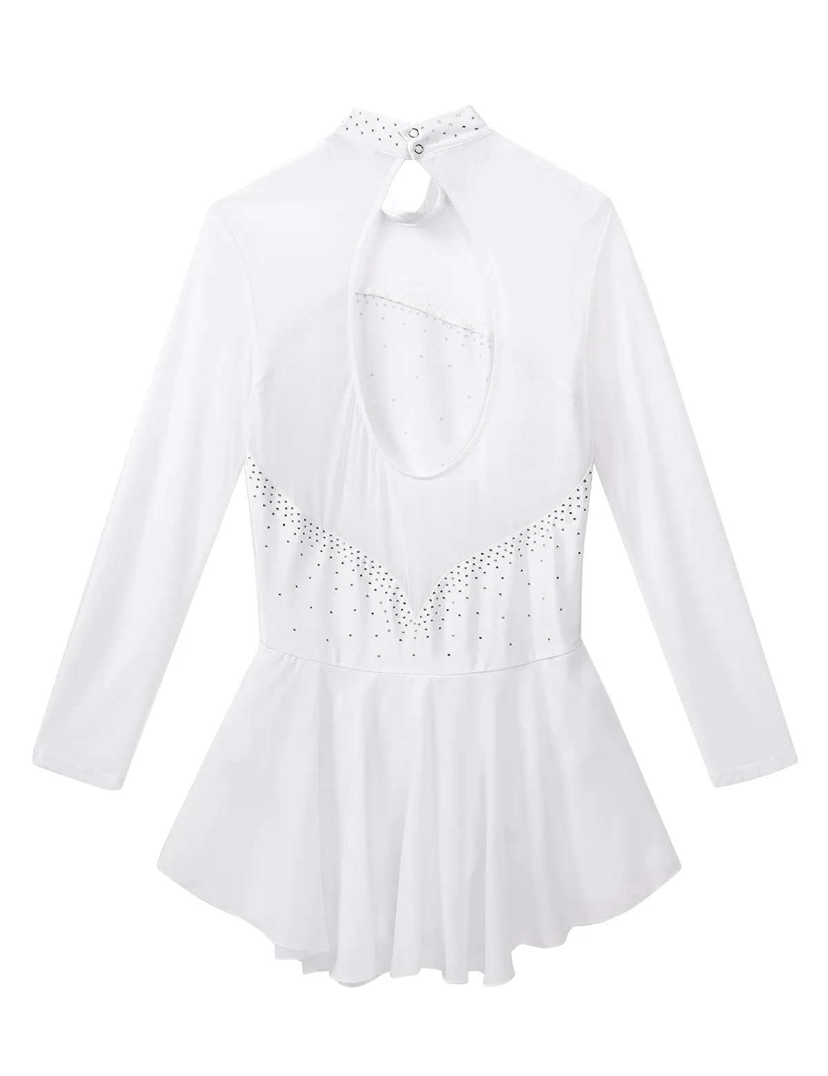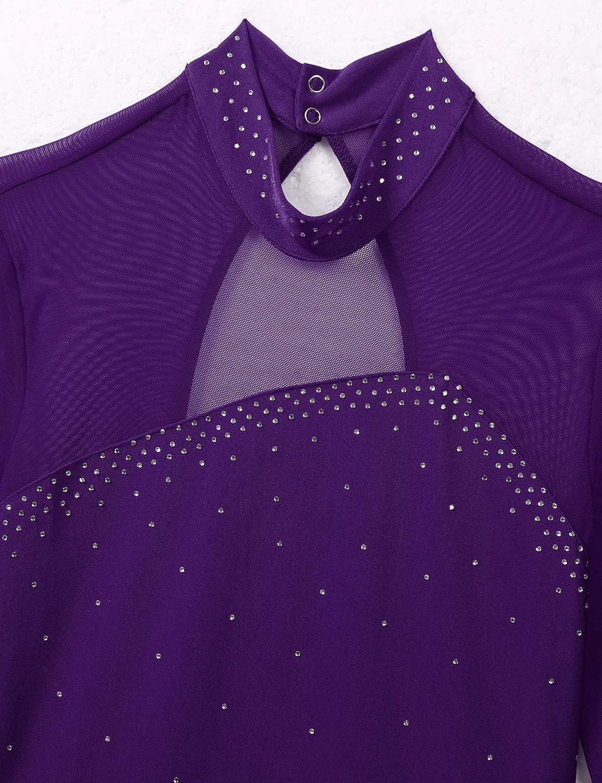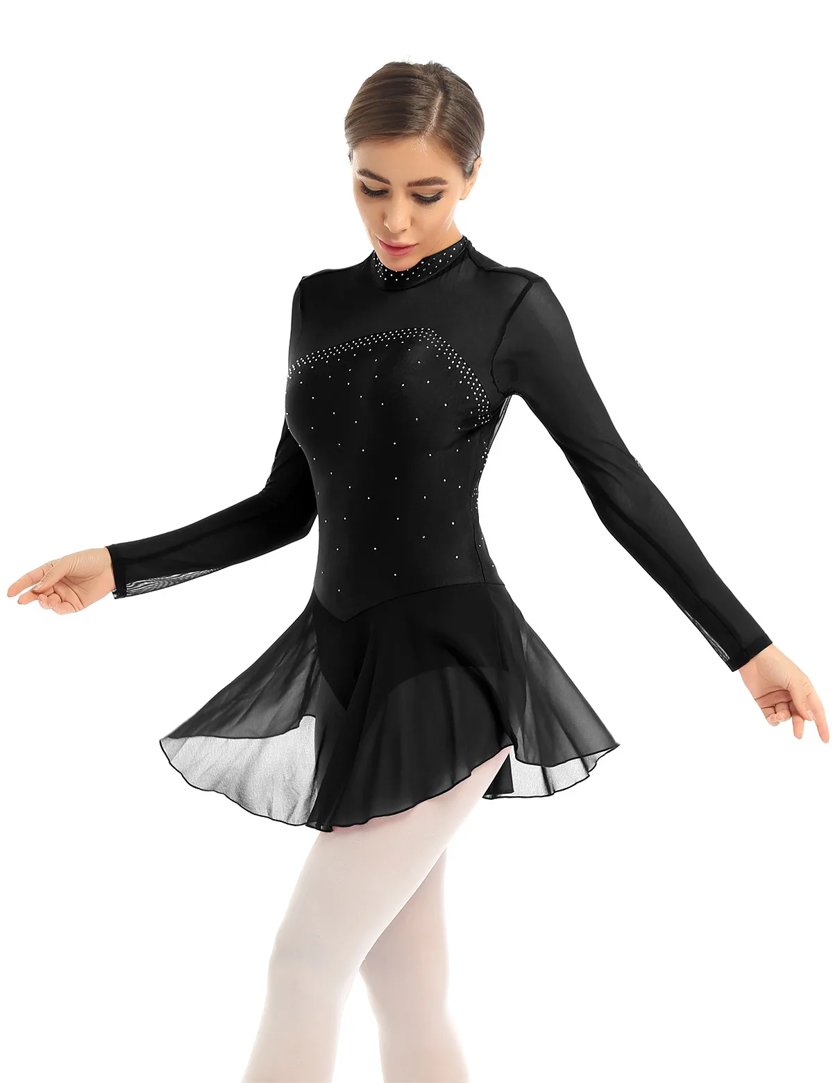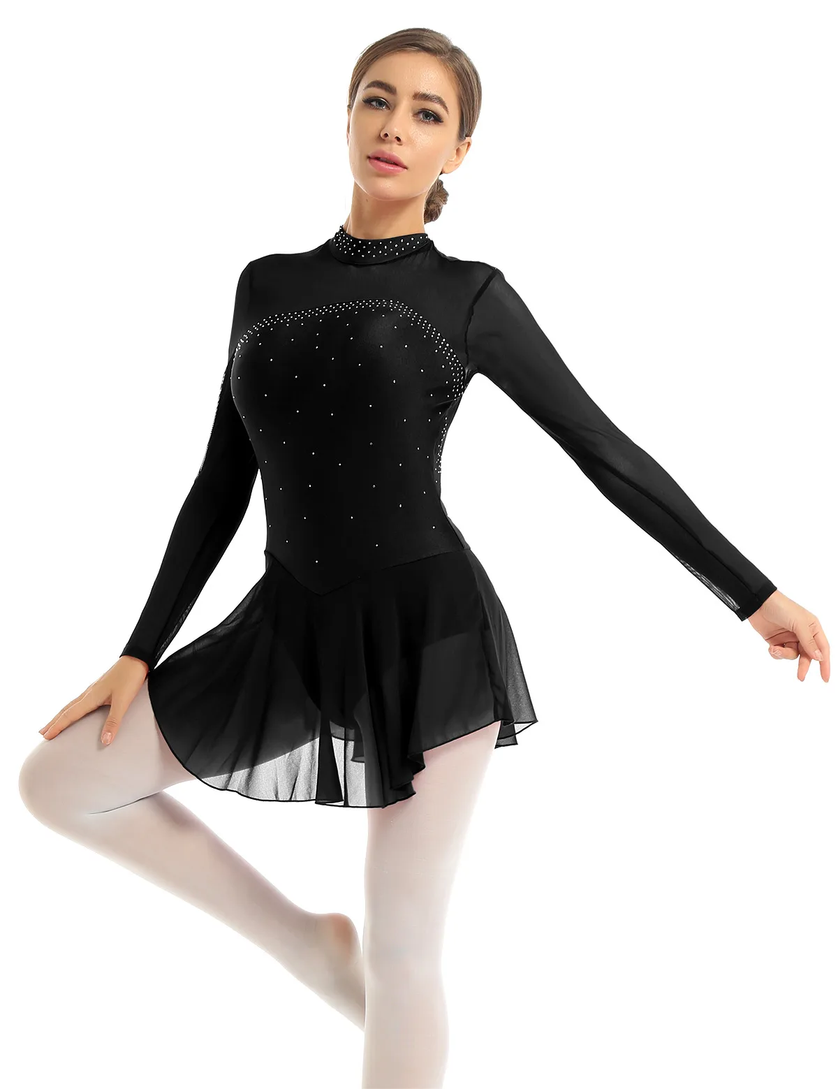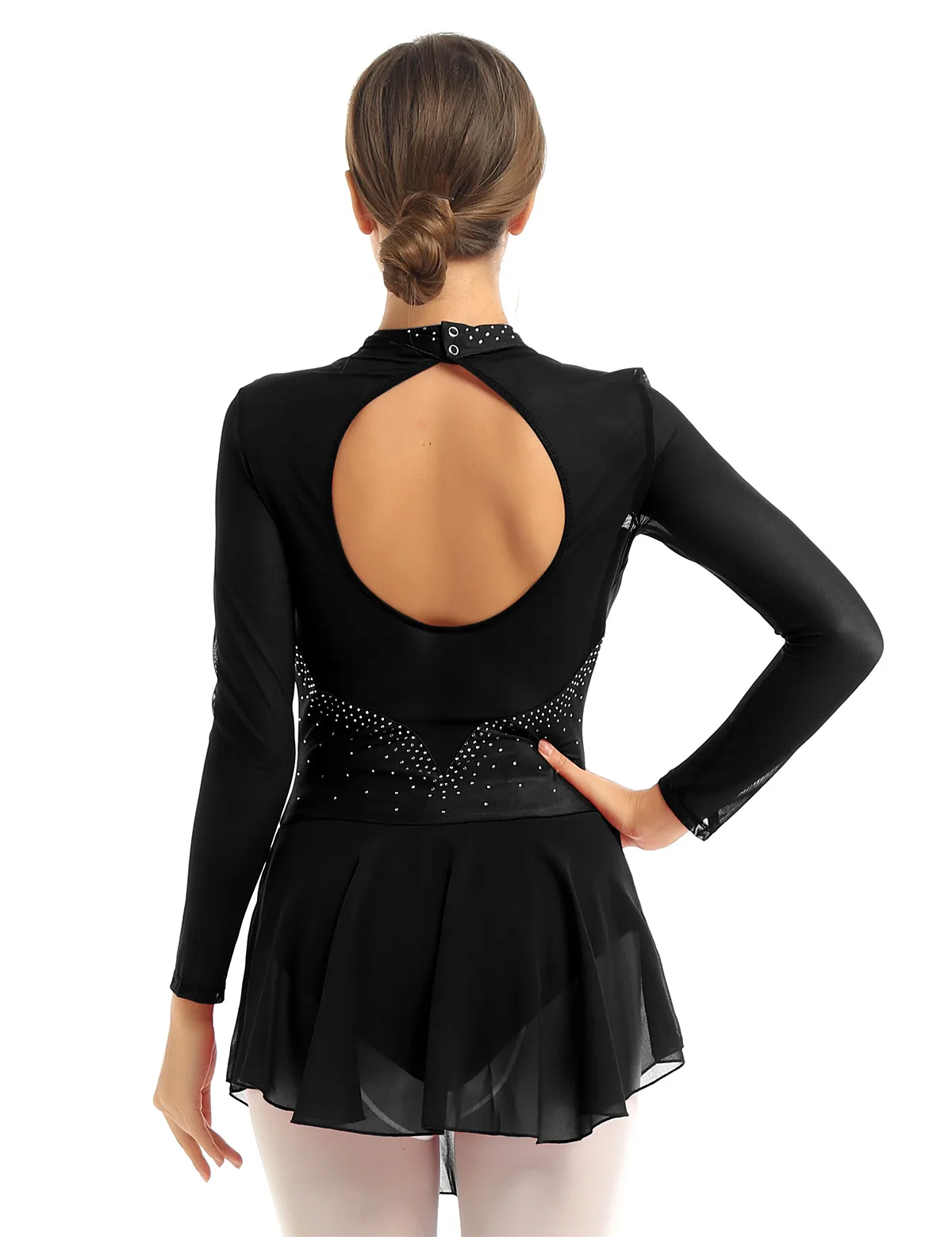 # S-XL, женские, взрослые, блестящие стразы, прозрачная сетка, с длинными рукавами, Замочная скважина, с открытой спиной, Фигурное катание на коньках, Катание на роликах, балетное танцевальное трико, платье