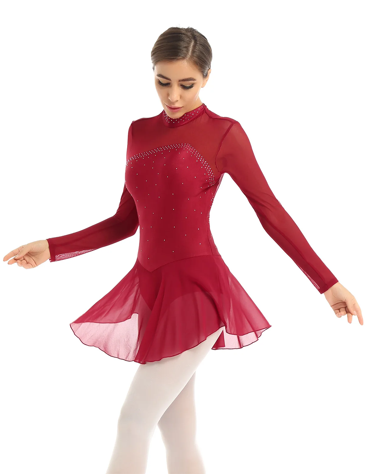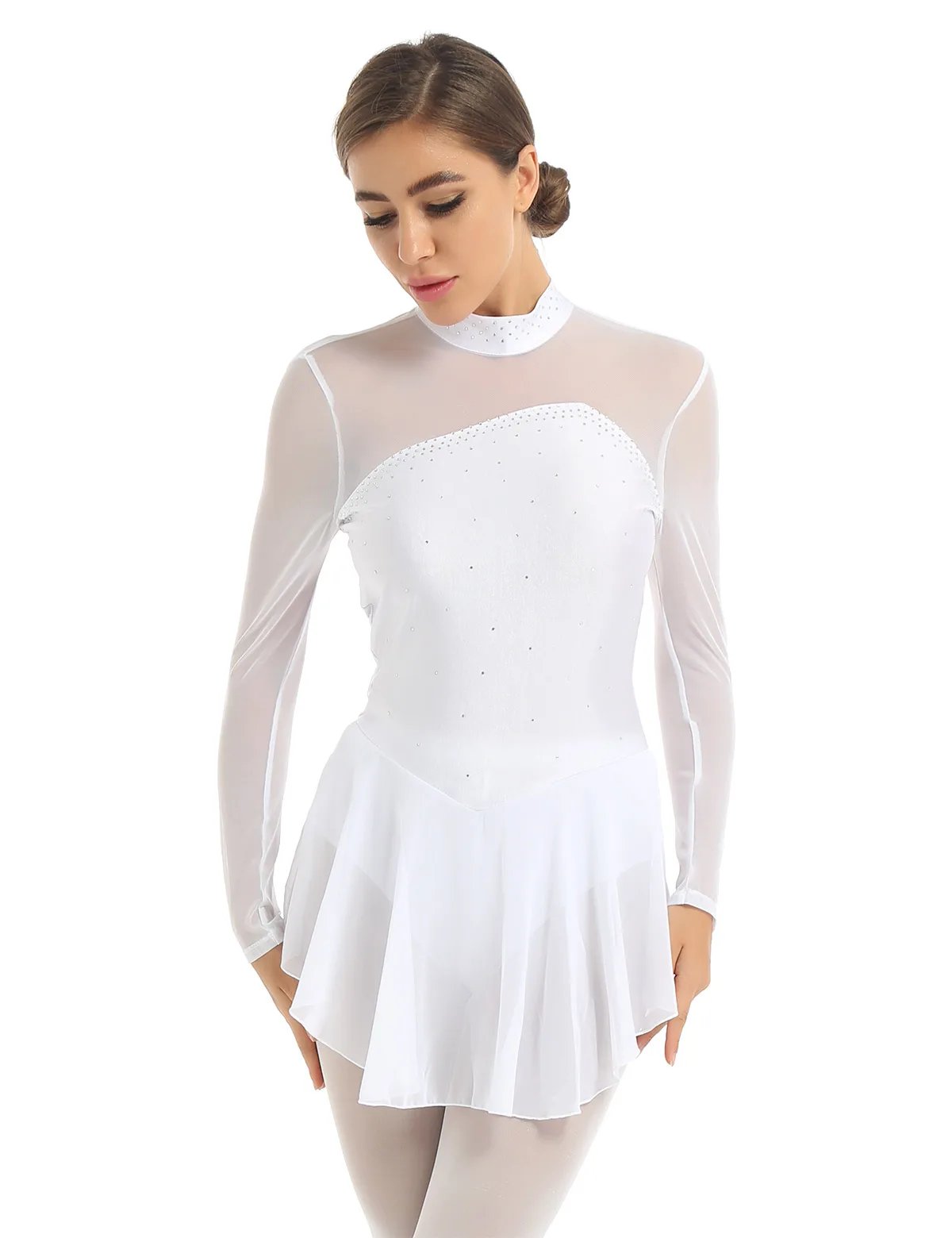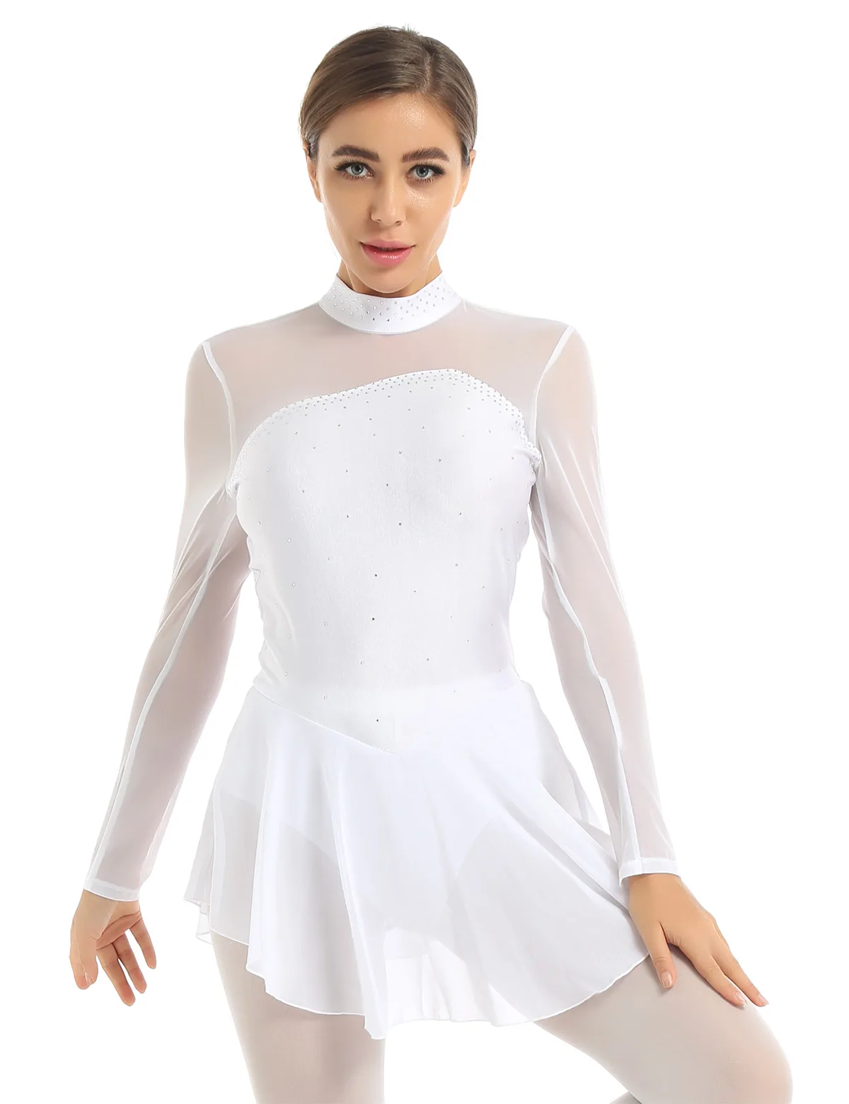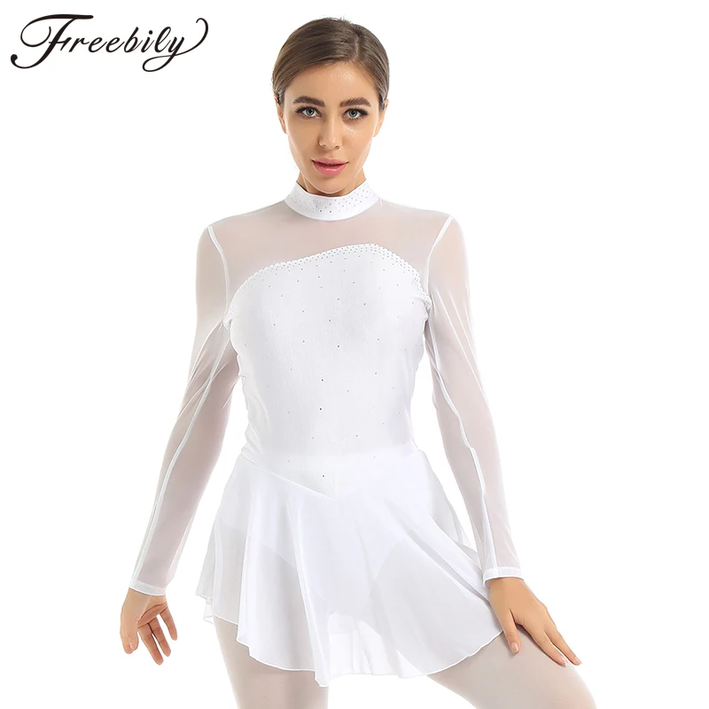 Женское Сетчатое платье с длинным рукавом для фигурного катания, балетная одежда, гимнастическое трико, костюм для выступлений