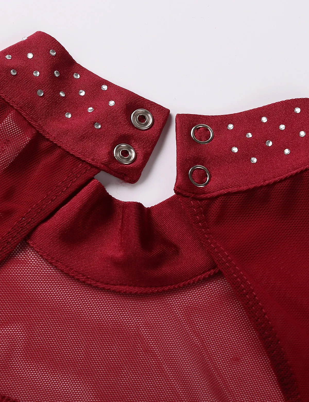 Номер моделиWomen Shiny Rhinestones Mesh Long Sleeves Leotard Dress