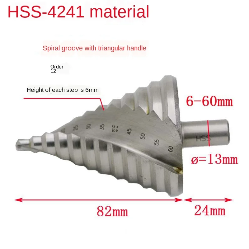 Ступенчатое сверло со спиральным пазом для дрели, 6-60 мм, многофун...