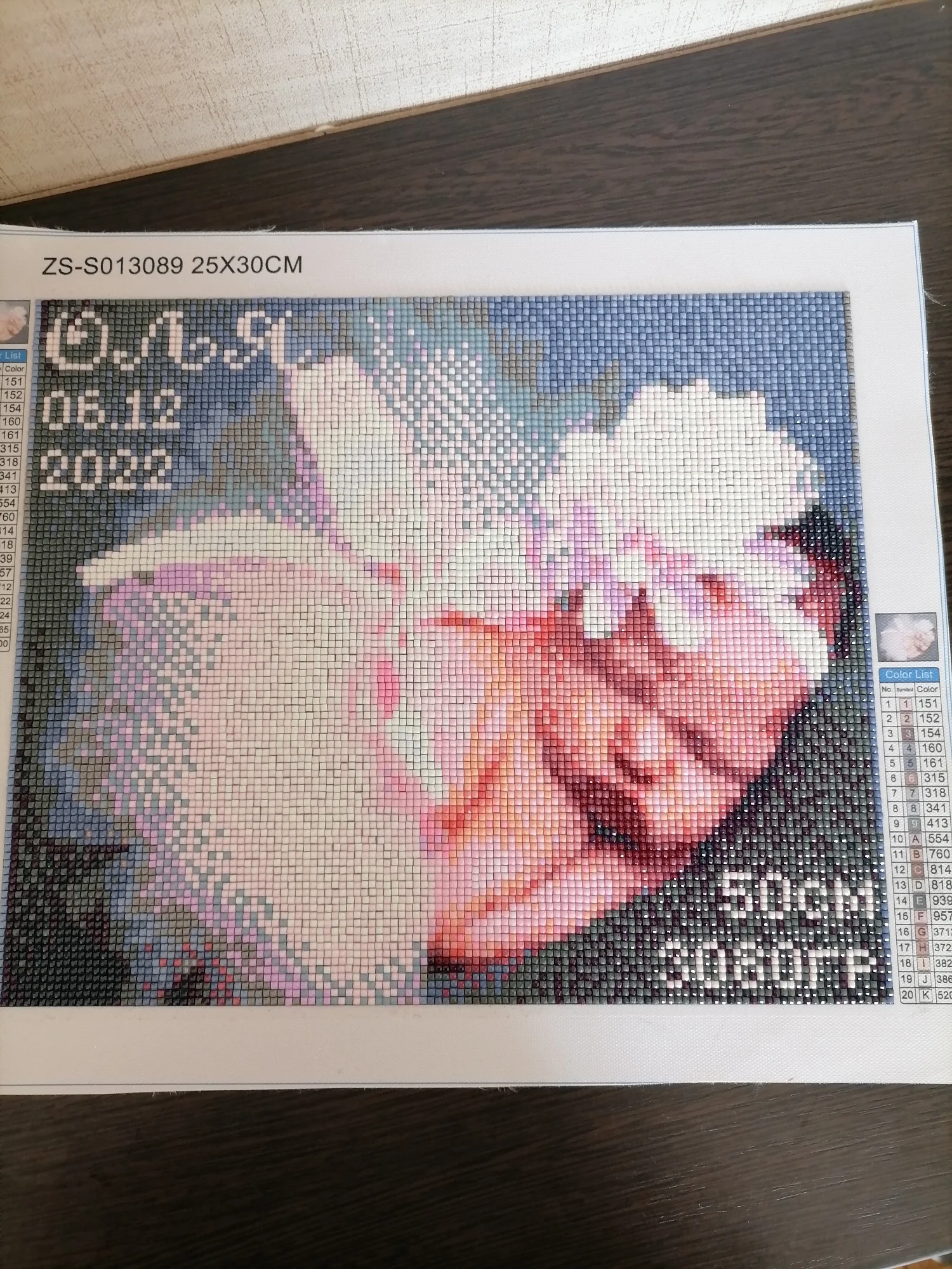 1. См. Таблицу сравнения на холсте, чтобы определить каждый номер алмаза и соответствующий номер печати на холсте.