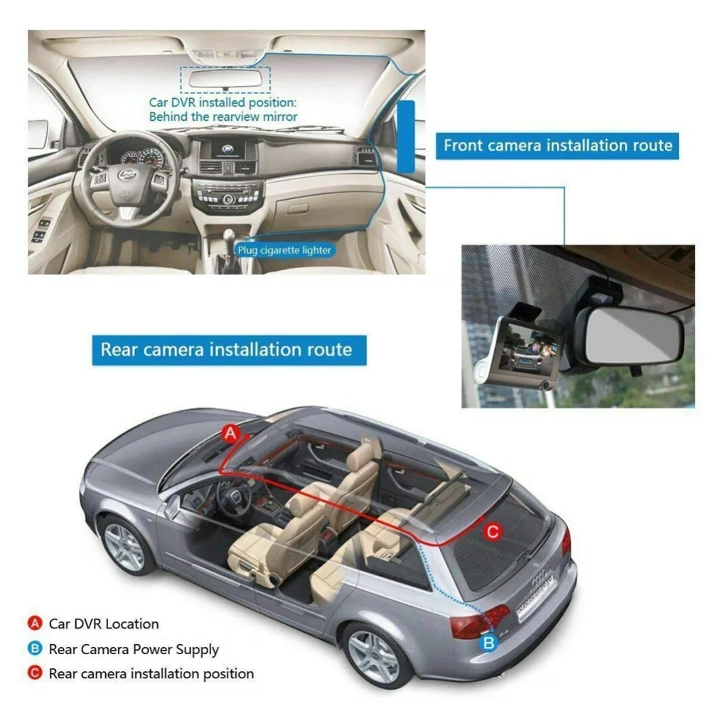 Автомобильный видеорегистратор 4 дюйма, с тремя объективами FHD, широкоугольный 170G-сенсор и камера ночного видения