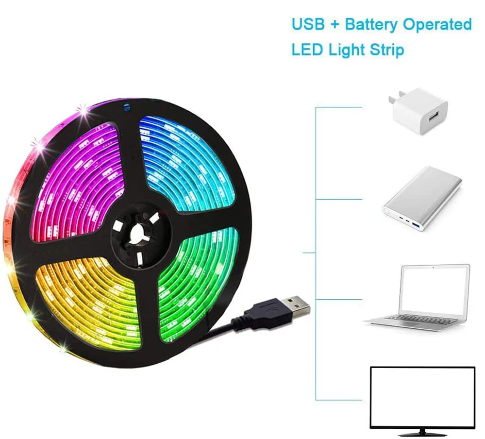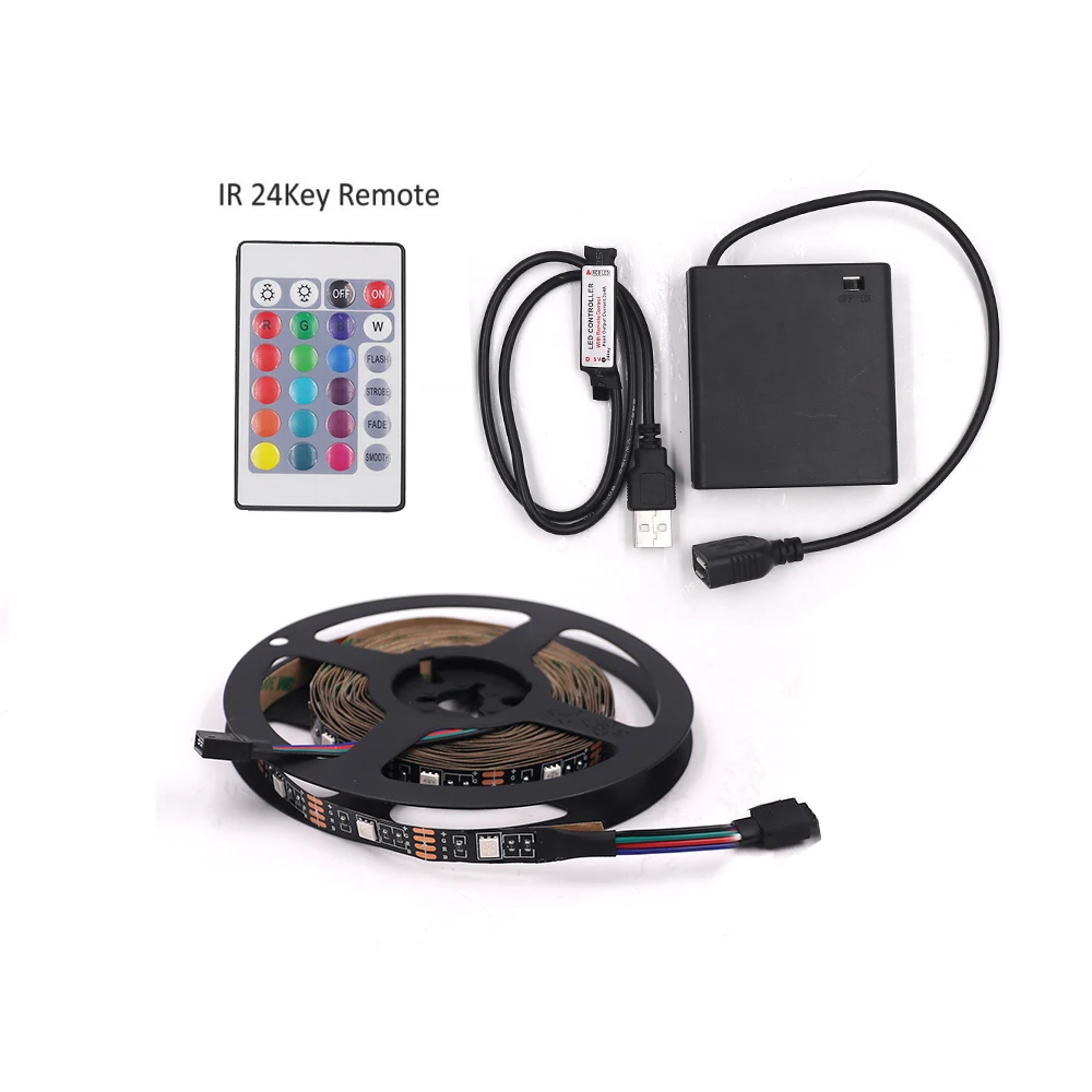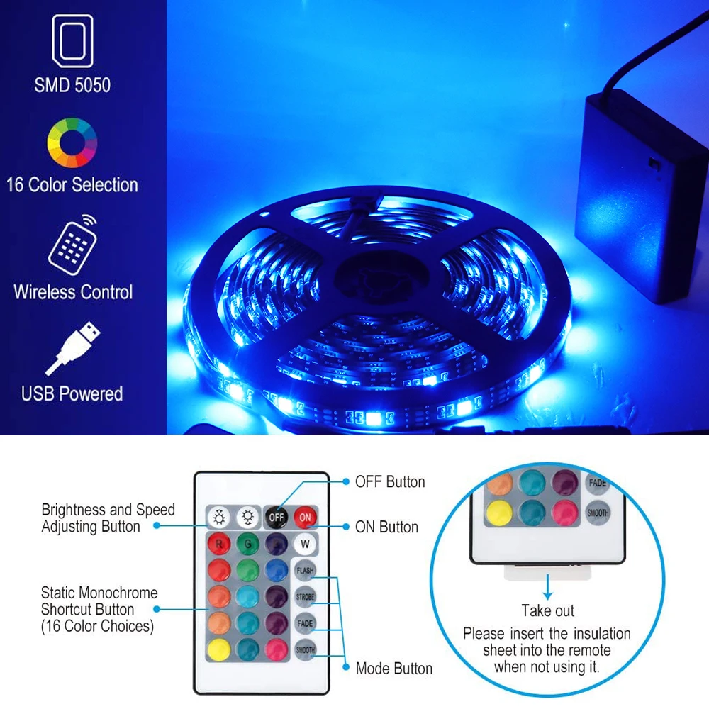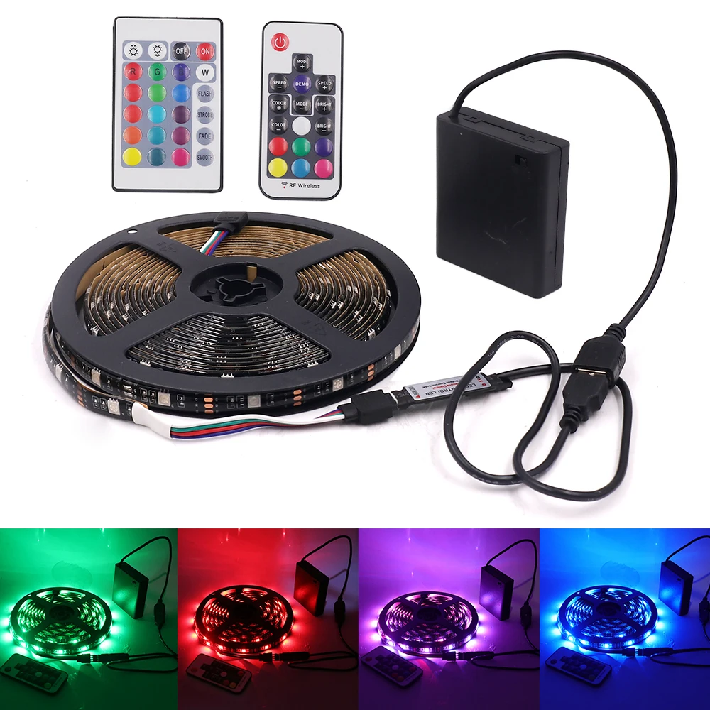 5V Светодиодные ленты светильник 5050 цветная (RGB) Батарея Мощность комплект Водонепроницаемый гибкая светодиодная лента светильник s для ПК ЖК-дисплей ТВ Подсветка светильник для дома украшения
