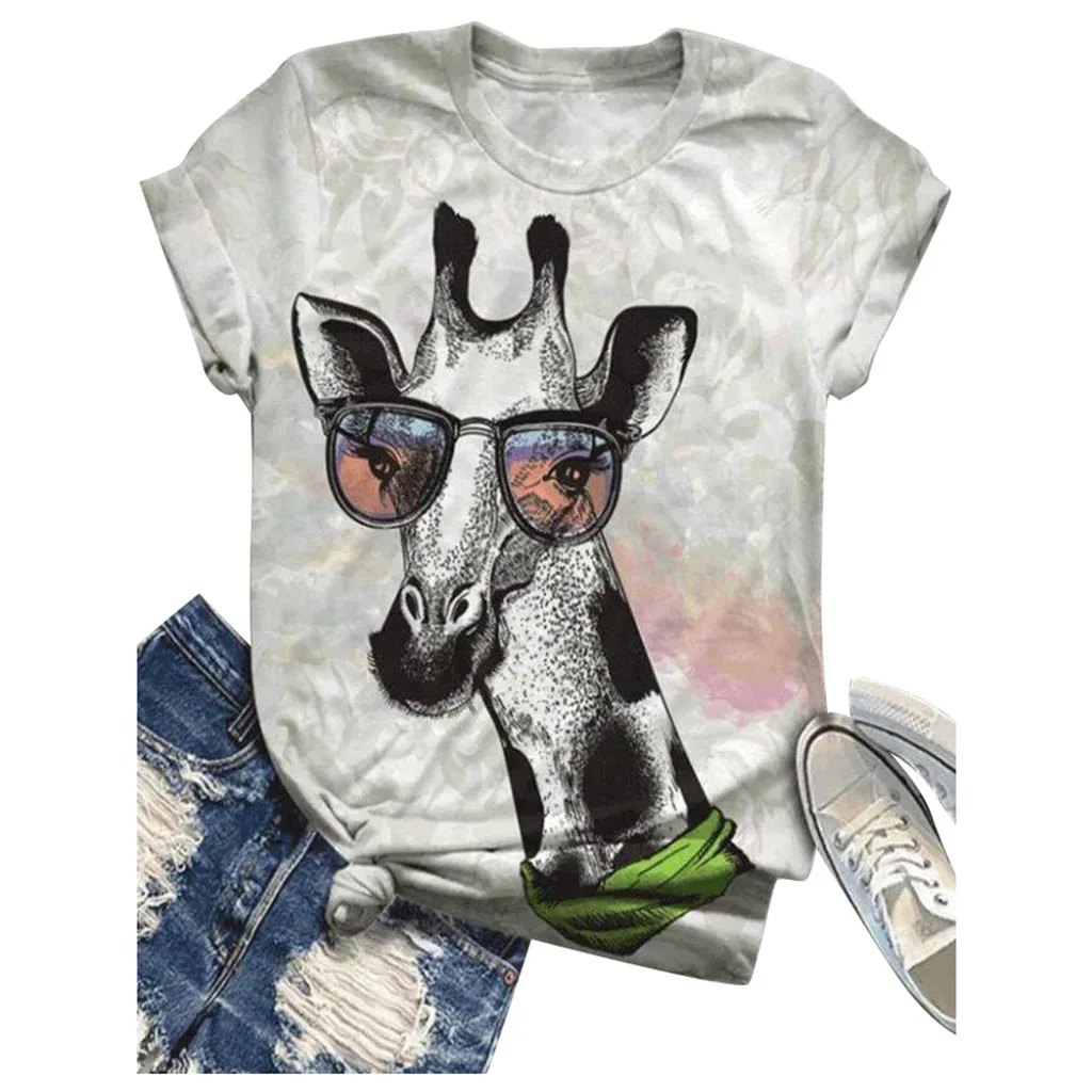 Женская футболка с короткими рукавами, Повседневная летняя футболка с принтом жирафа, 2020