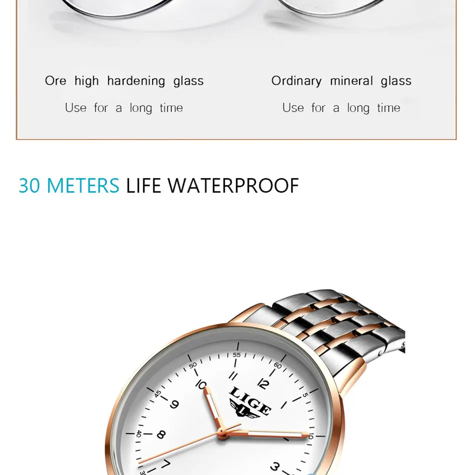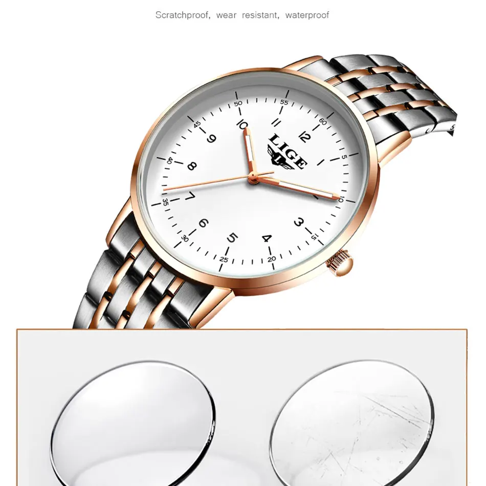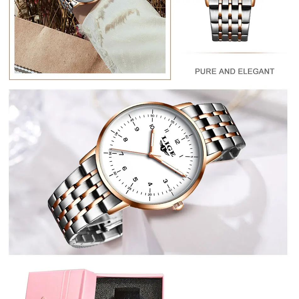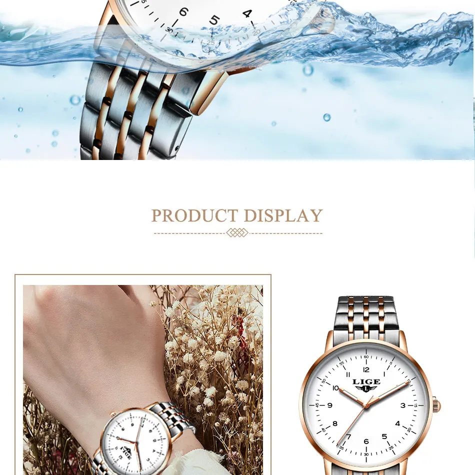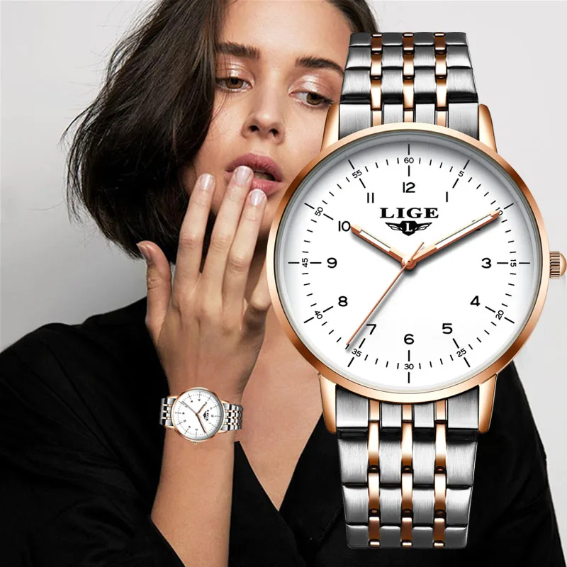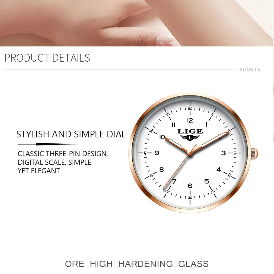 Часы наручные LIGE женские кварцевые, модные водонепроницаемые повседневные, с коробкой