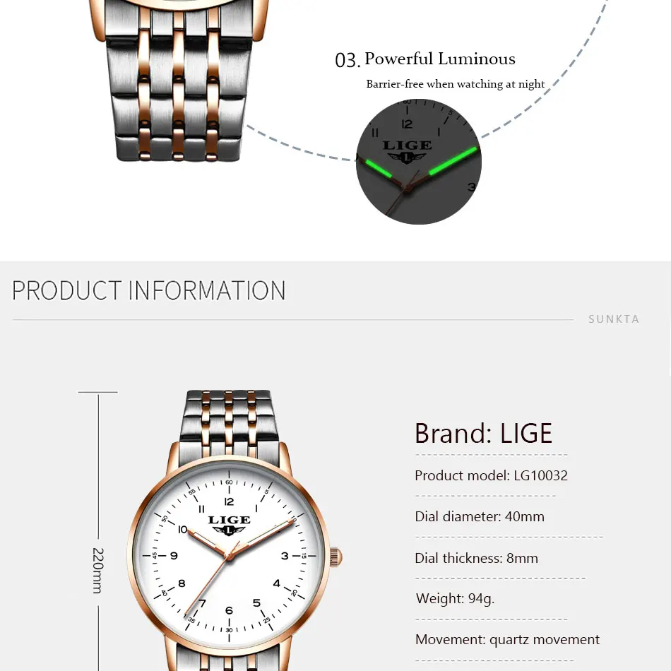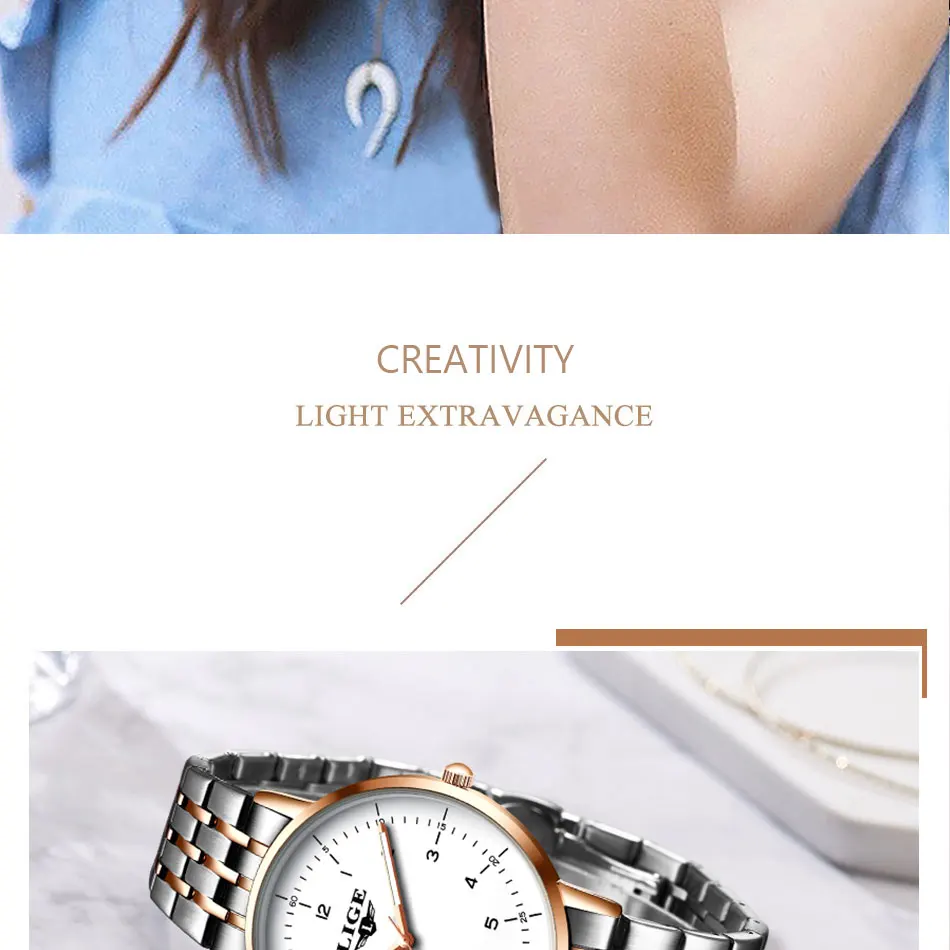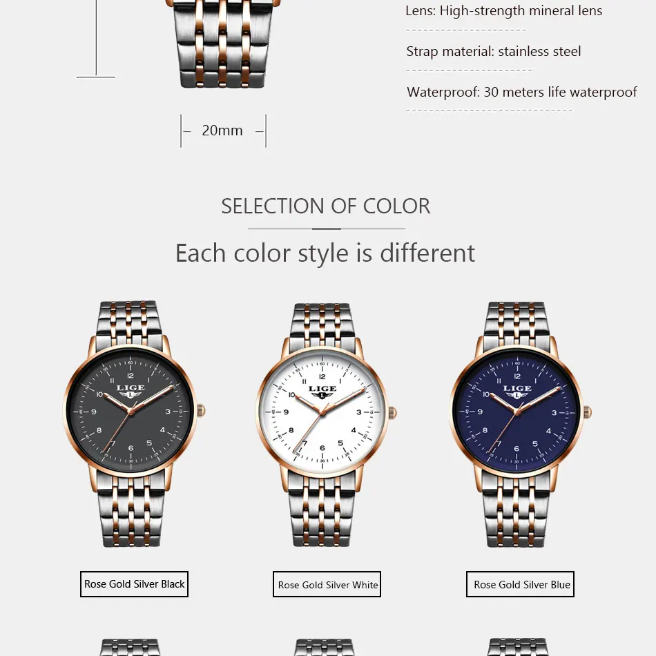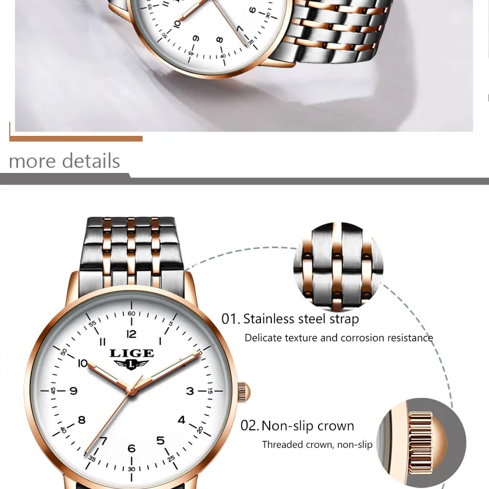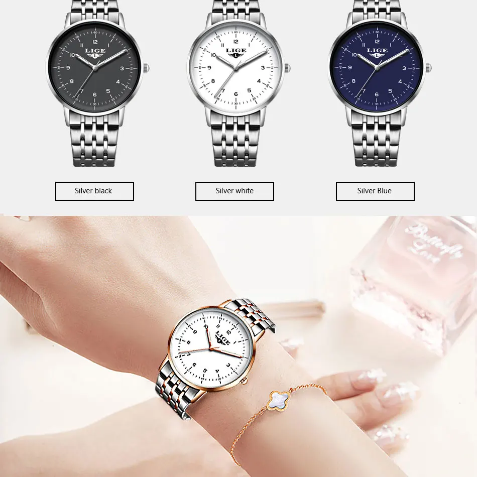 Часы наручные LIGE женские кварцевые, модные водонепроницаемые повседневные, с коробкой