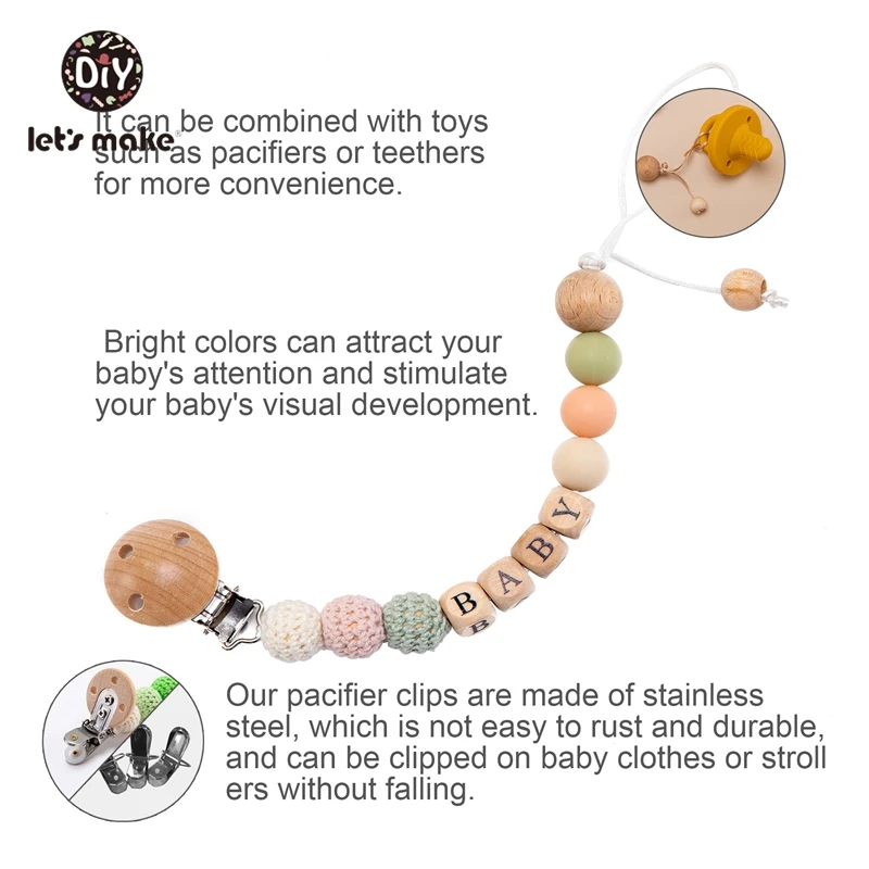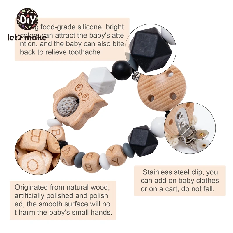 Бренд: давайте сделаем Характеристики материала: без латекса, без нитрозамина, без фталата, без BPA, без ПВХ Функция: Прорезыватель Упаковка: одна загрузка Материал: деревянные бусины, кроше слон Форма: грызун Возраст: 4-6 месяцев 7-9 месяцев Номер модели: зажимы для соски Количество: 1 шт. Если вы покупаете в большом количестве, мы можем настроить логотип для вас