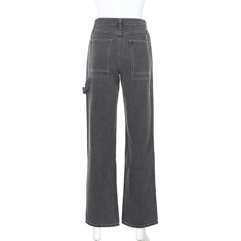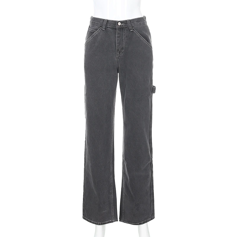 Женские джинсы, дымчато-серые мешковатые джинсы в стиле ретро, с вы...