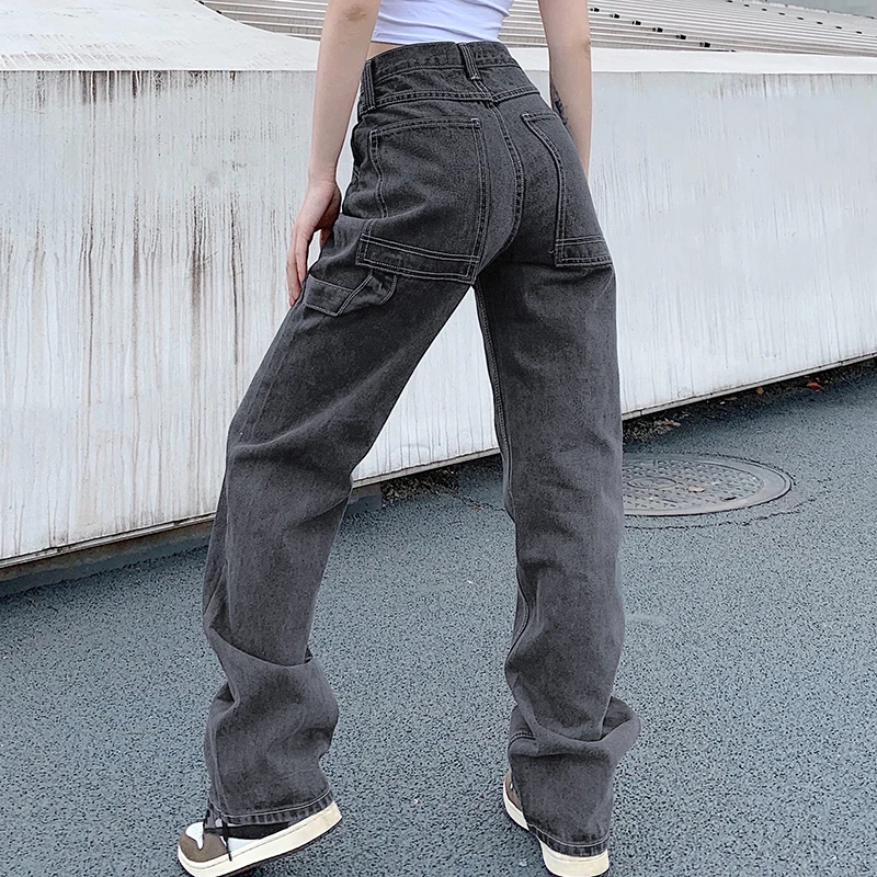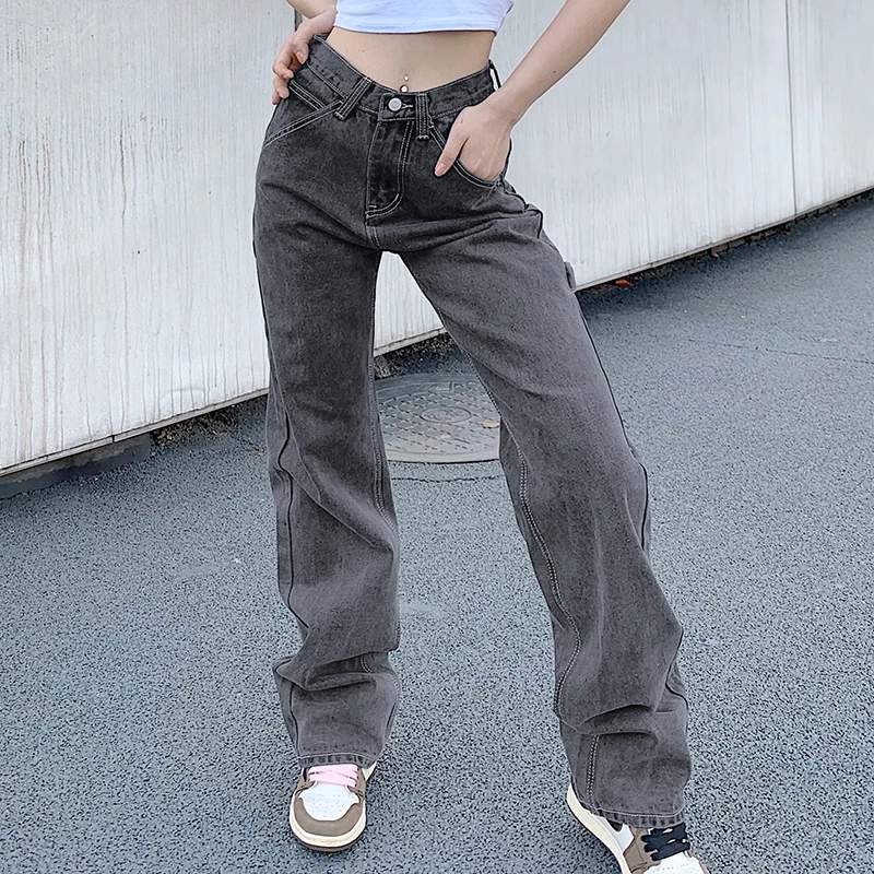 2021 женские джинсы мешковатые дымчатые Серые Синие элегантные широ...