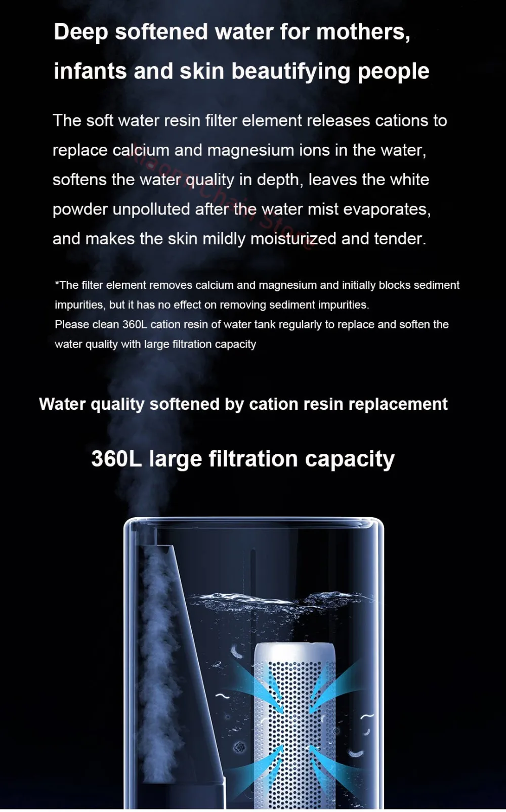 Фильтрующий элемент из мягкой смолы для воды выпускает катионы и заменяет ионы кальция и магния в воде, глубоко смягчает качество воды, позволяет водному туману испаряться и прощаться с загрязнением белого порошка, А также позволяет коже быть нежной и увлажненной для поддержания упругости.