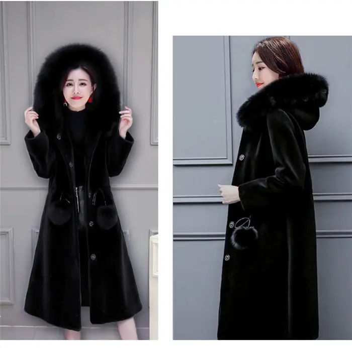 Новинка, Женское зимнее пальто из искусственного меха норки, модная однотонная женская куртка с капюшоном и воротником из искусственного меха