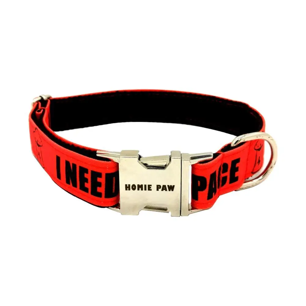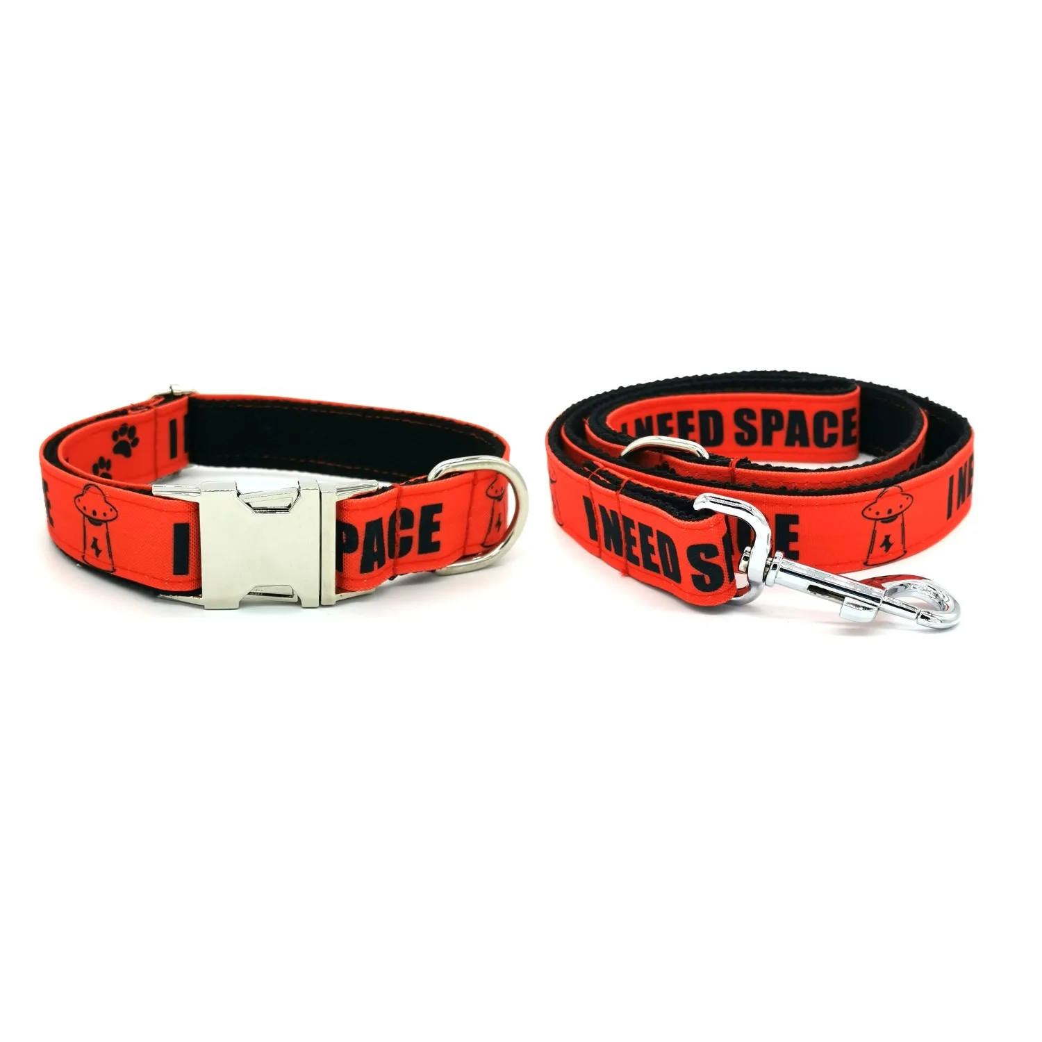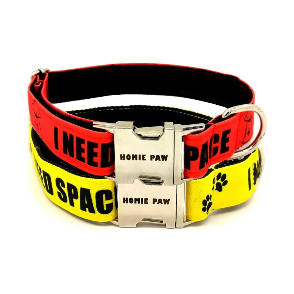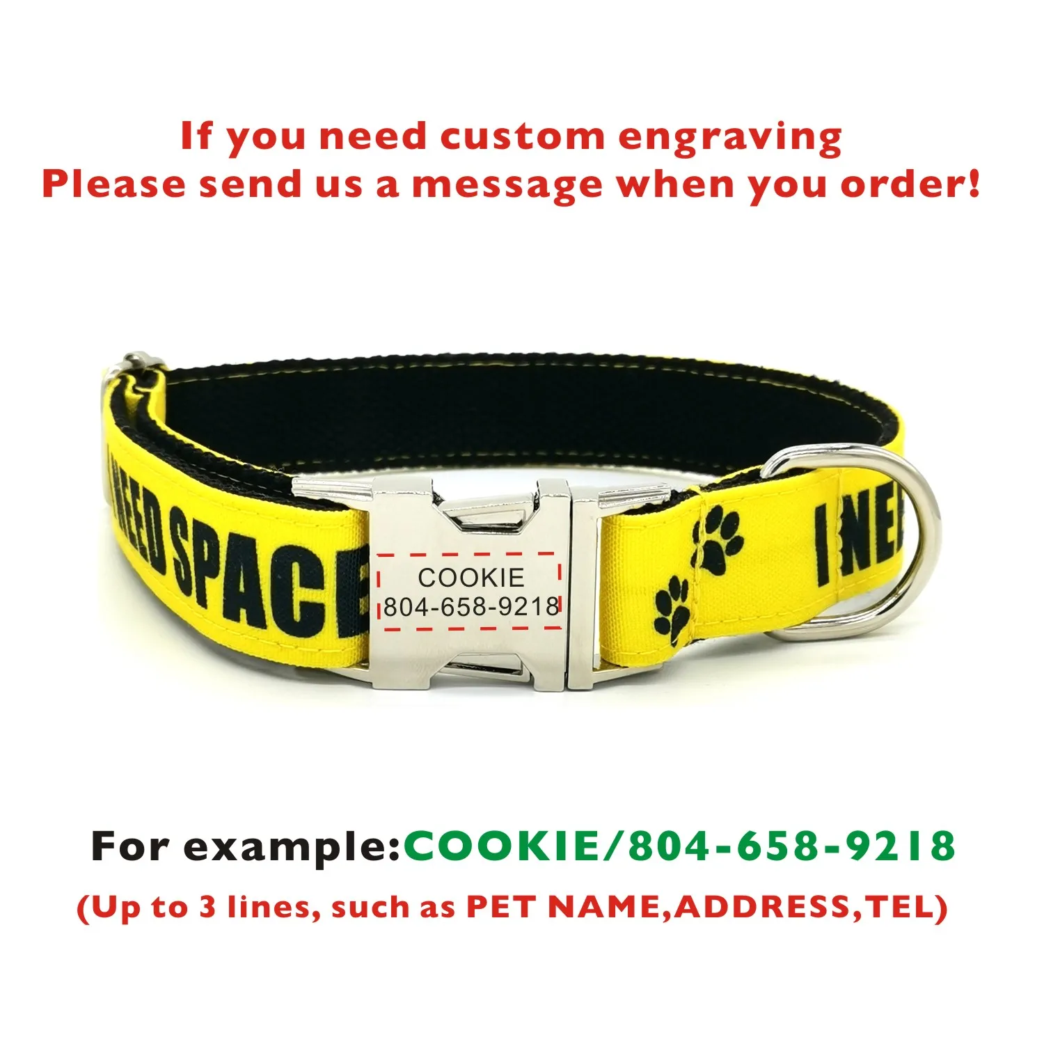 Персонализированный ошейник для питомца, предупреждающий знак, мне нужно пространство, идентификационная бирка для щенка, кошки, регулируемое имя под заказ, красные, желтые базовые ошейники для собак, поводок, набор