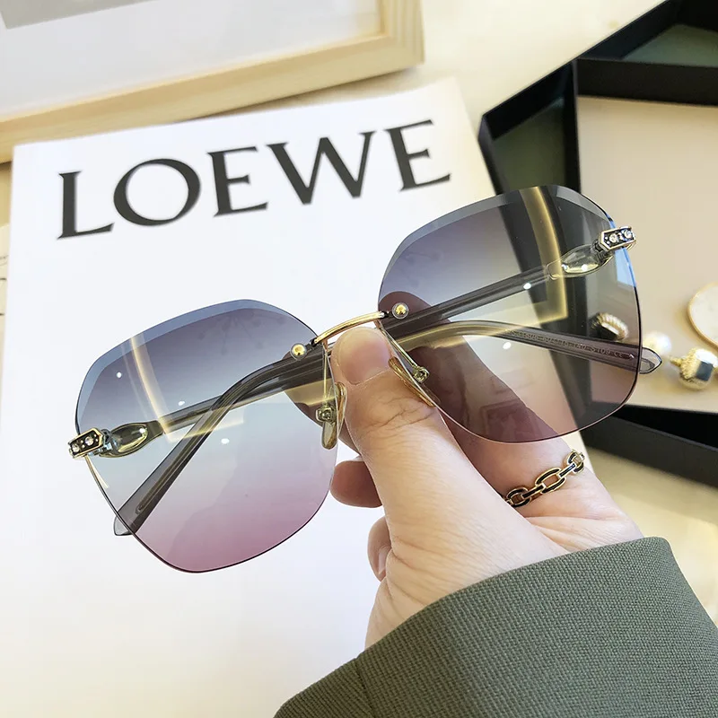 Солнцезащитные очки без оправы Uv400 женские, большие, с градиентом...