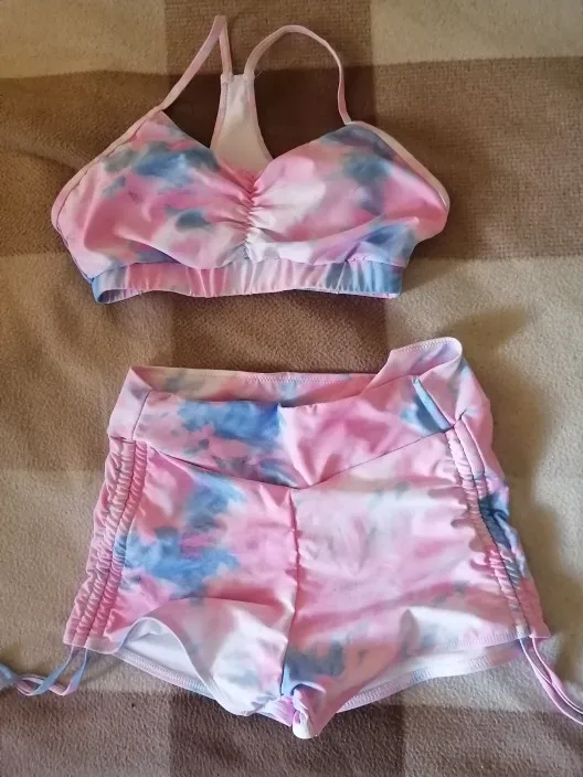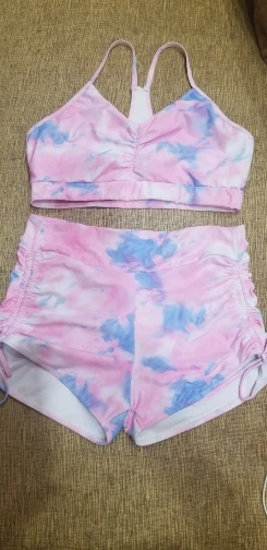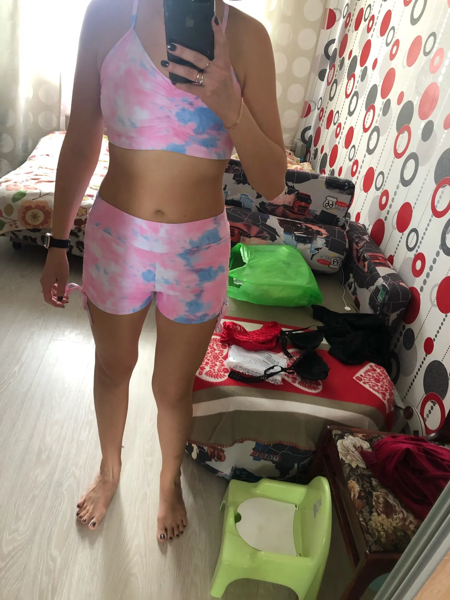 комплект впринципе сидит хорошо, мои параметры: 86,68,95, но шорты внизу сильно обтягивают ляхи, хотя в талии и на бедрах все хорошо.