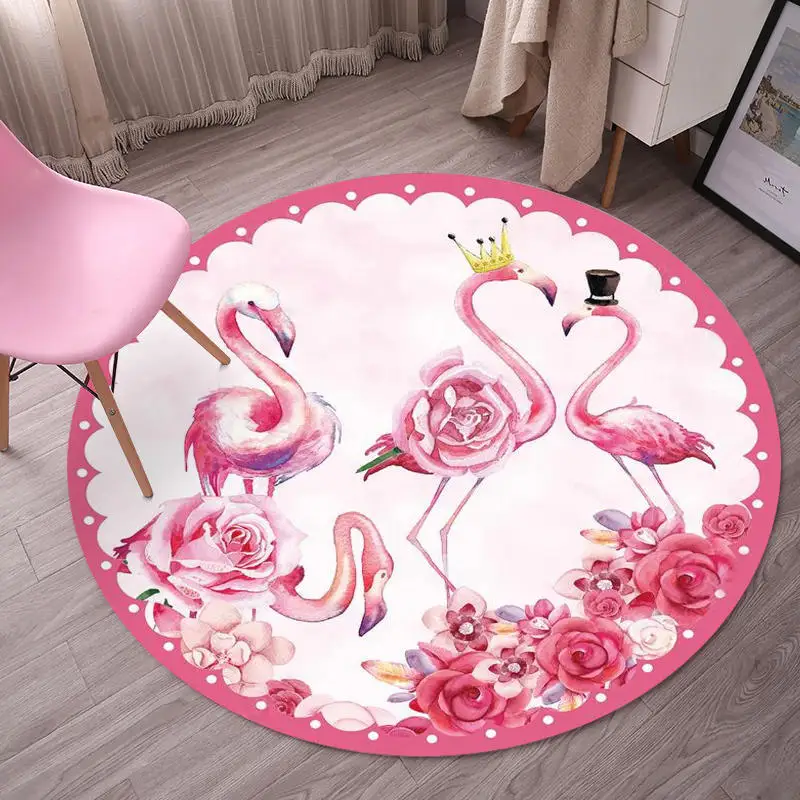Современный круглый ковер, модный мультяшный принт фламинго, круглый коврик для гостиной, спальни, напольный детский игровой коврик, анти-sli