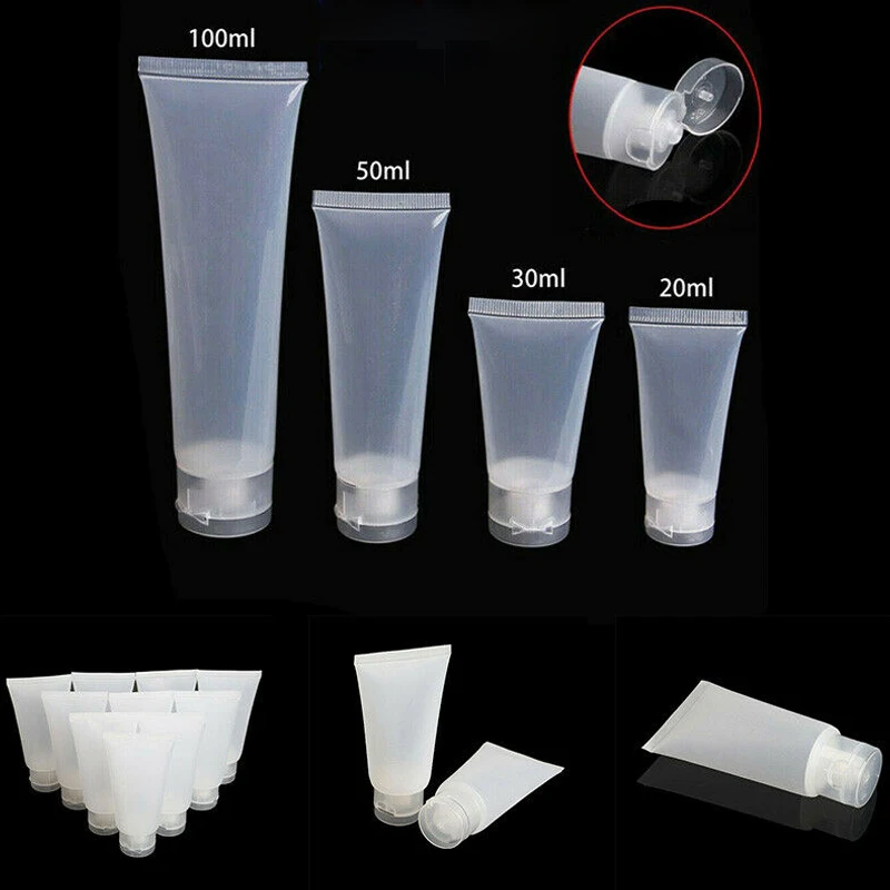 Пустые пластиковые портативные трубки 50 шт., 15 мл, 30 мл, 50 мл, 100 мл, косметический лосьон, дорожная бутылка, крем для рук, гелевые образцы контейнеров